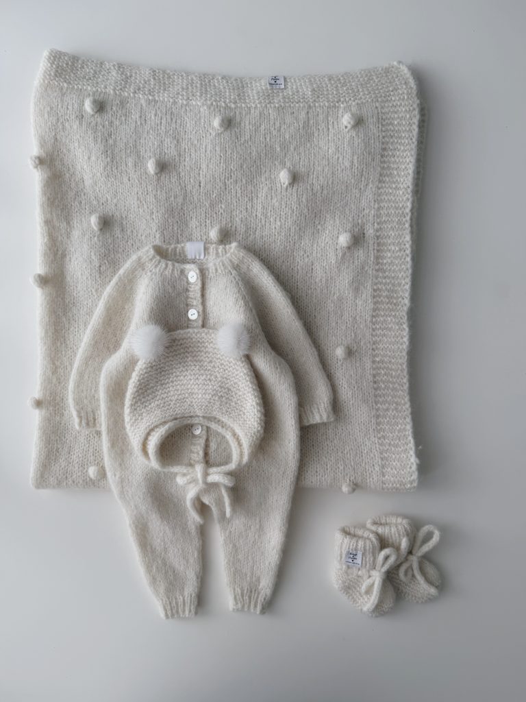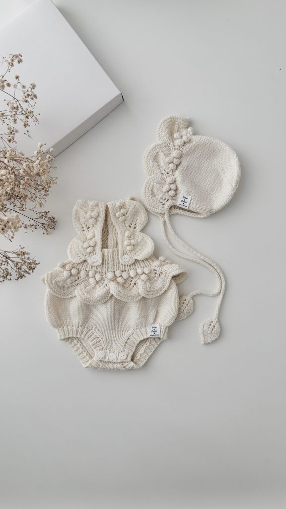 Knit Alpaca Baby Romper & Bonnet Set – Cream Sitter Outfit
