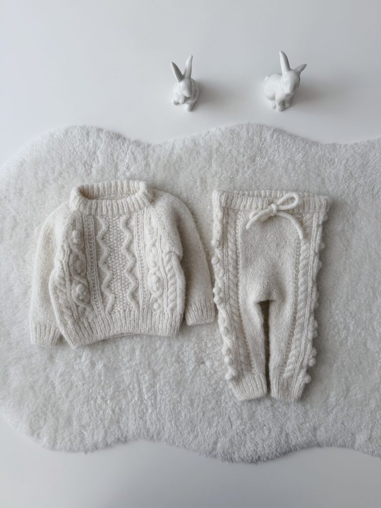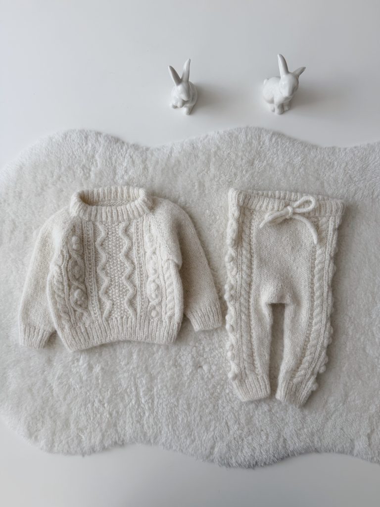 Alpaca Baby Sweater and Footed Pants Set – Cream Knit Outfit