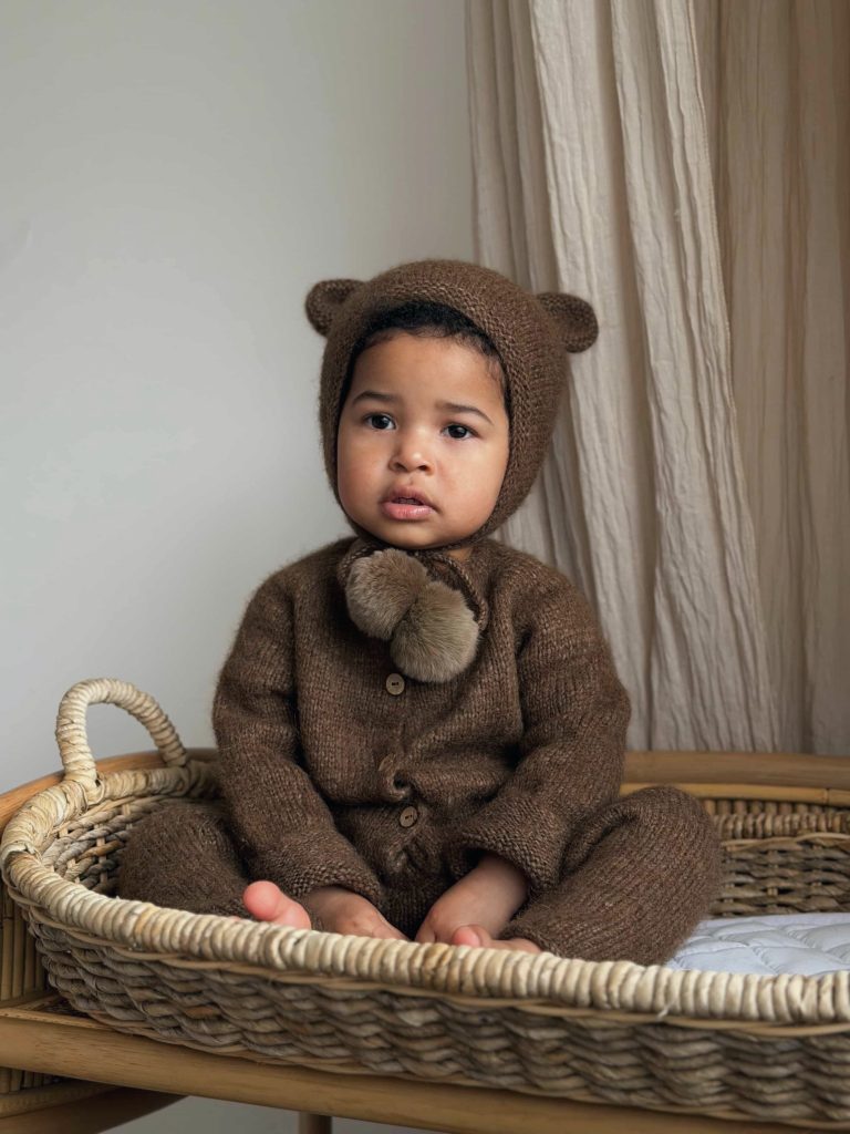 Alpaca Blend Baby Romper & Bonnet Set – Unisex Beige Outfit
