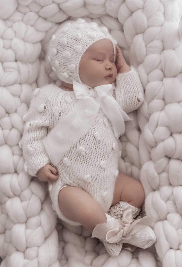 Knit Baby Alpaca Romper and Bonnet Set – Cream Photo Prop