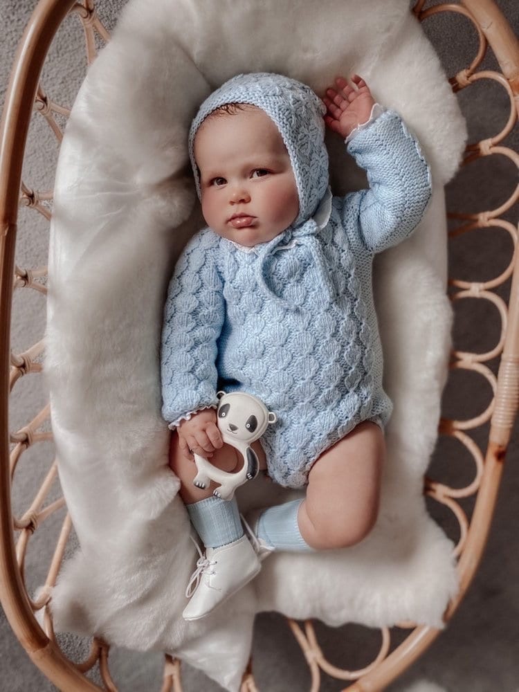 Crochet Baby Boy Romper Set – Pale Blue Merino Wool, Bonnet & Toy