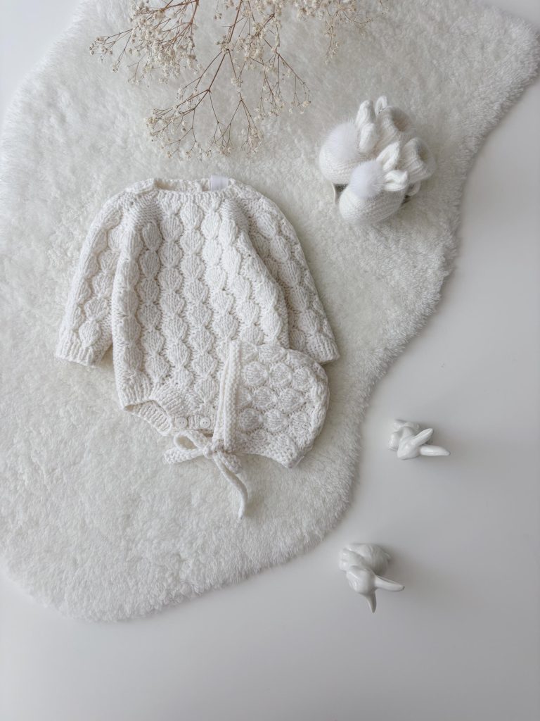 Knit Baby Alpaca Romper and Bonnet Set – Cream Photo Prop