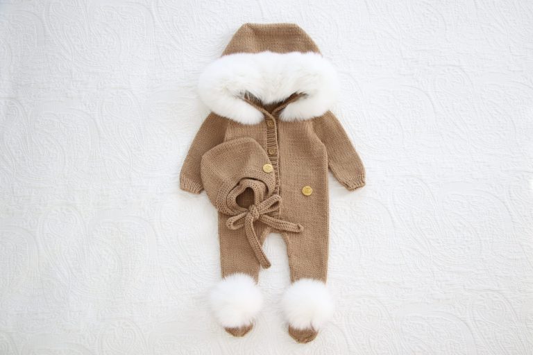 Merino Baby Romper Set – Fur Trim Hood & Bonnet