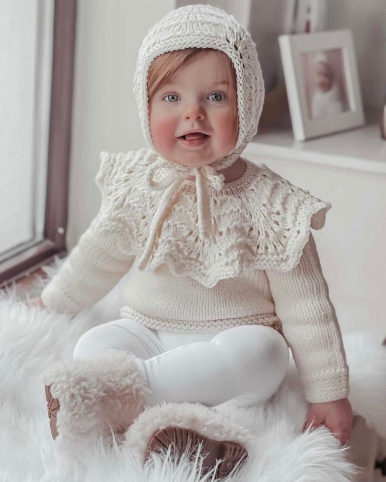 Merino Baby Sweater and Bonnet Set – Cream Ruffle Knit Outfit