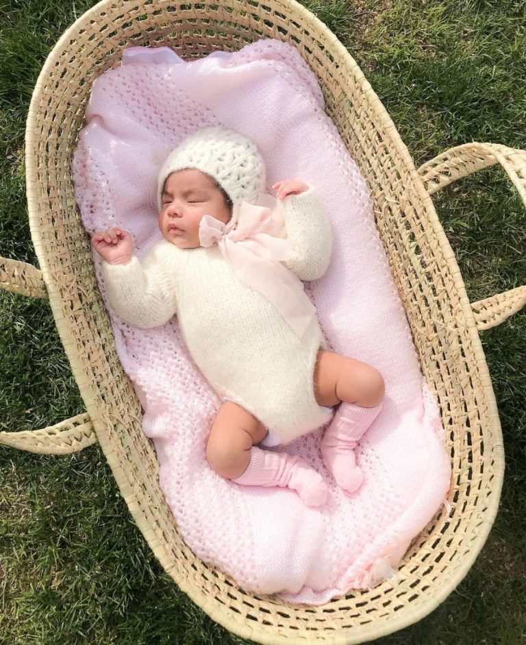 Knit Alpaca Baby Cardigan Romper & Bonnet Set – Cream outfit with bee embroidery