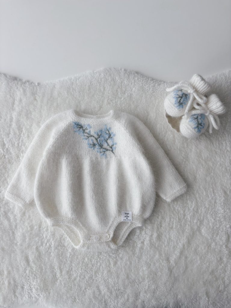 Angora romper and booties – Set of 2 – Long sleeve romper – Baby girl props – Photo props – Baby boy – Baby photo – Embroidery – White
