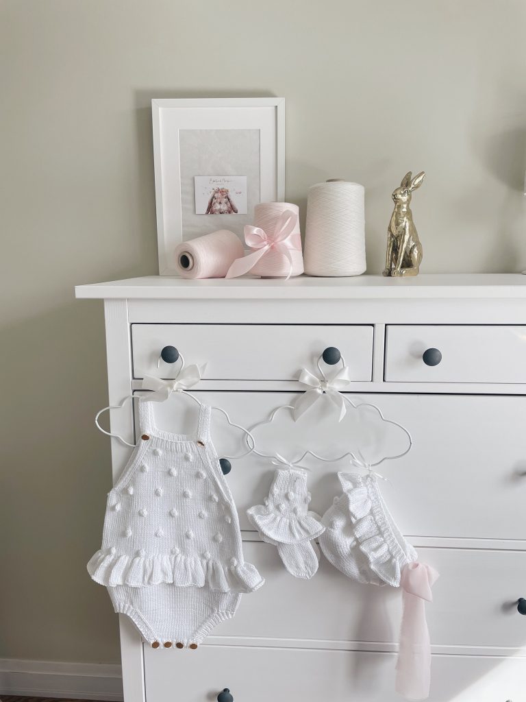 Cotton Baby Romper Set – White Popcorn Knit, Bonnet & Socks