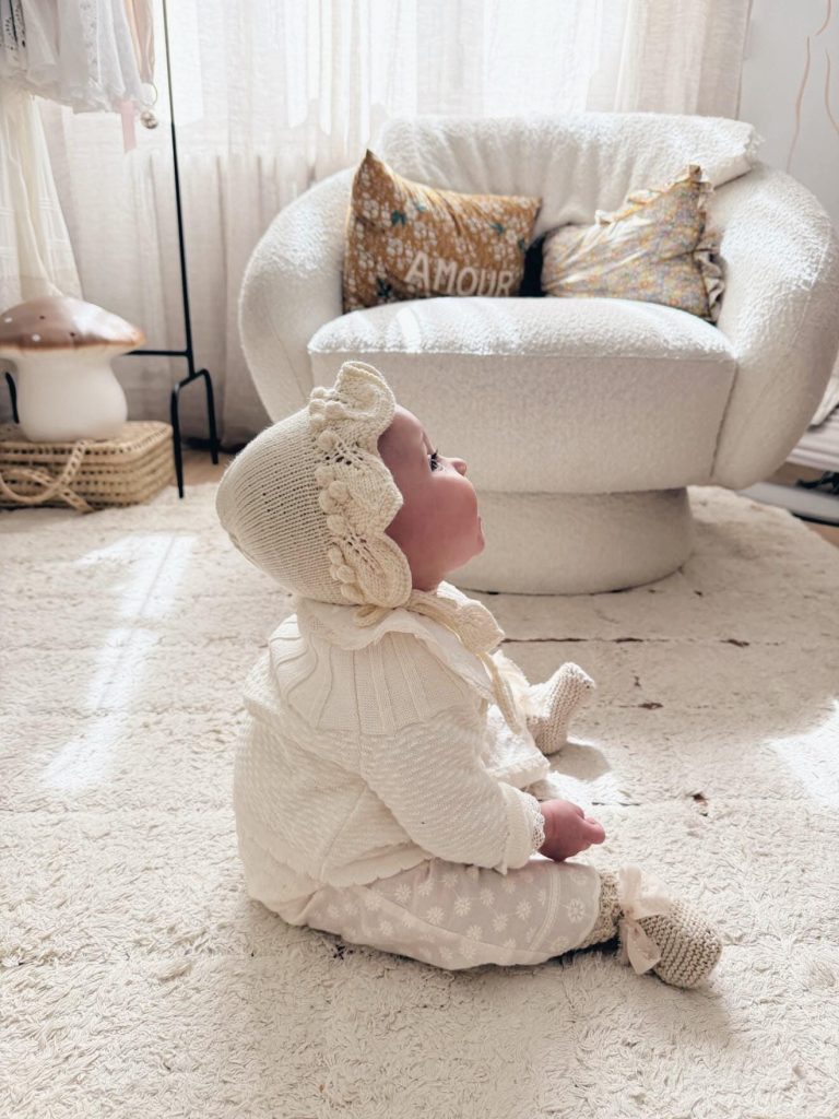 Hand Knitted Baby Alpaca Bonnet – Cream Sitter Photo Prop