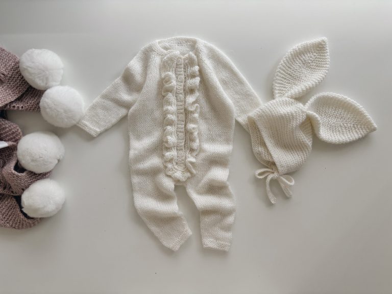 Baby Romper and Bunny Bonnet Set – Merino Mohair Knit Outfit