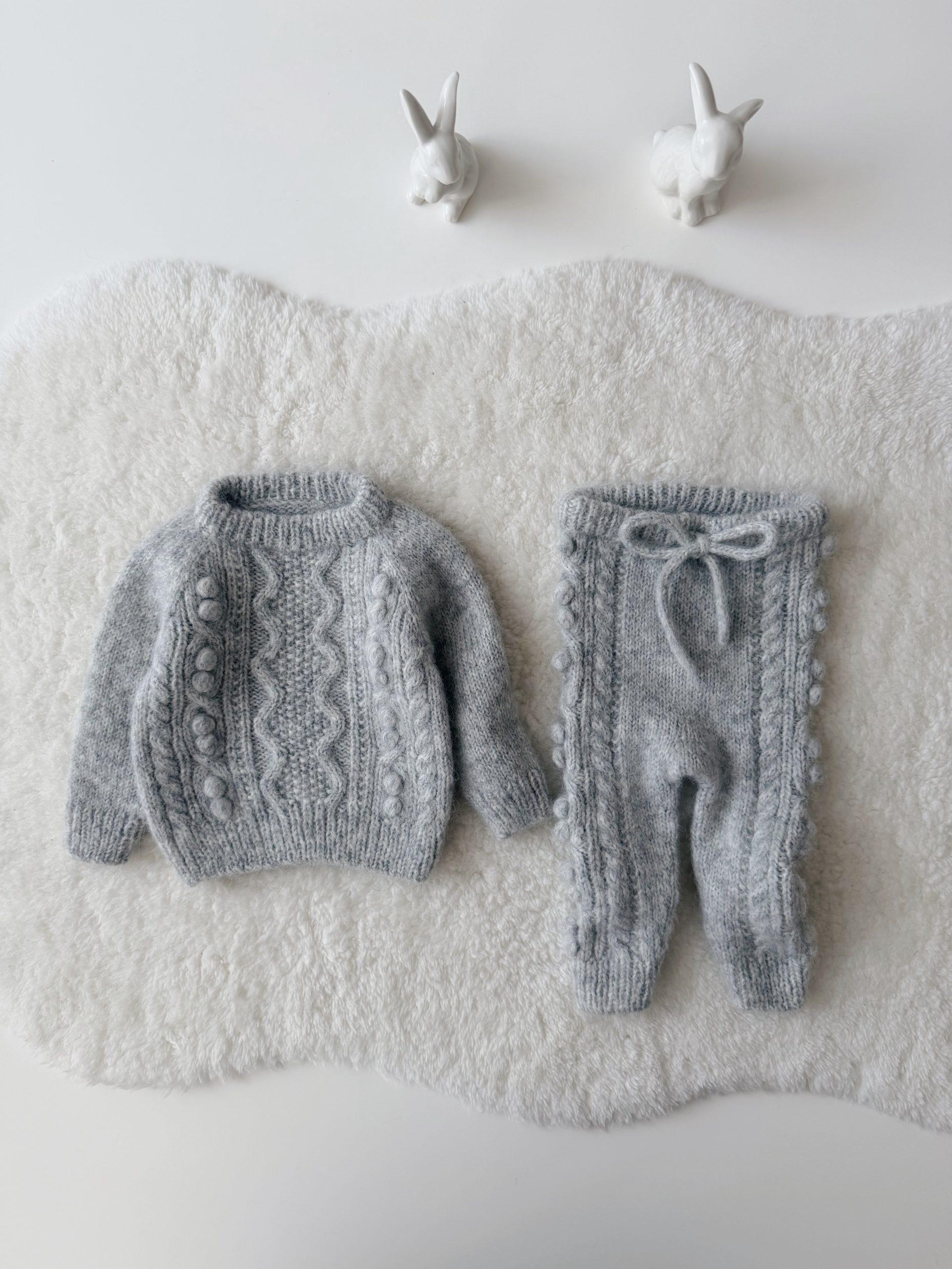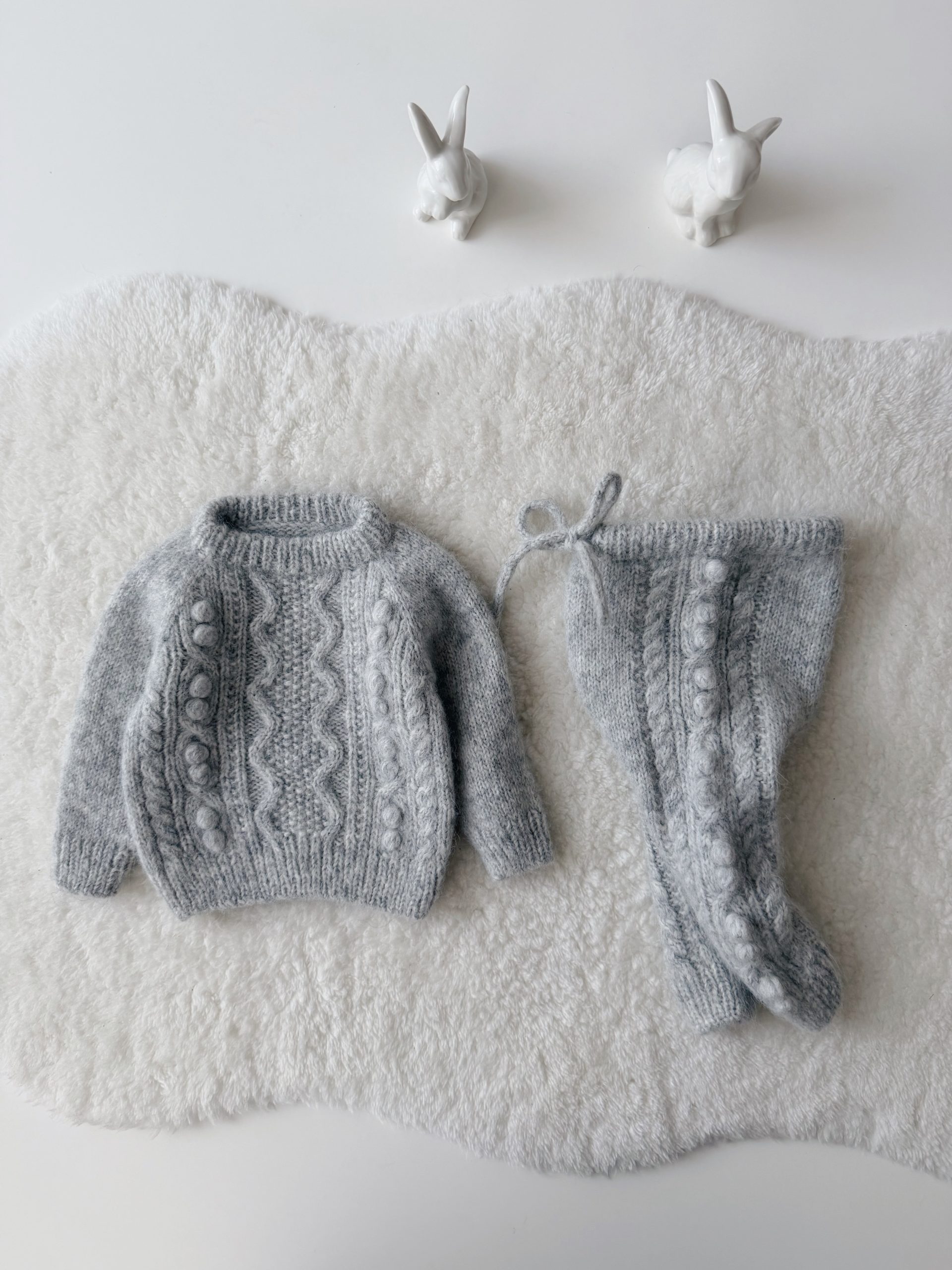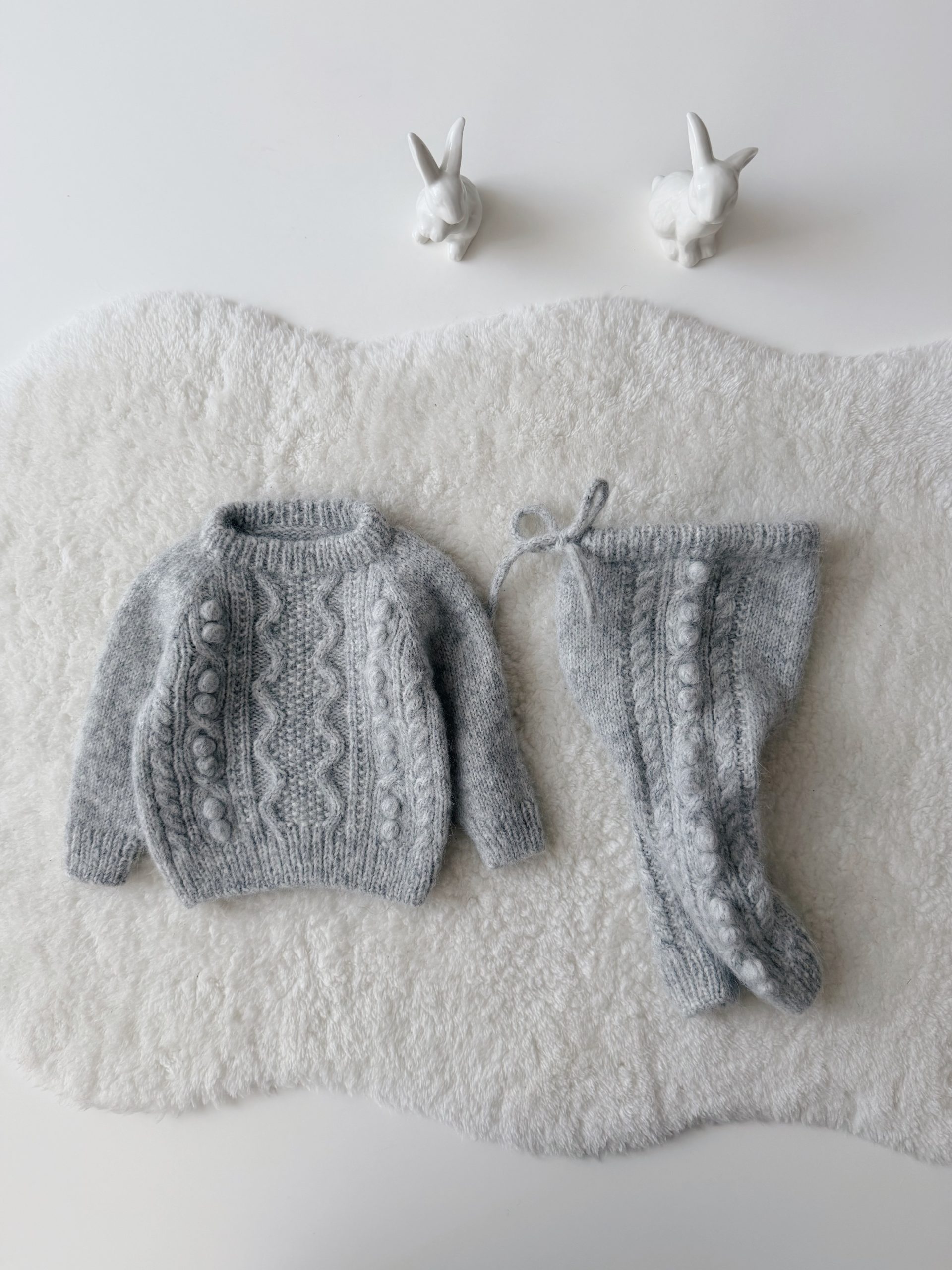 Alpaca Silk Baby Cardigan Set – Stone Popcorn Knit