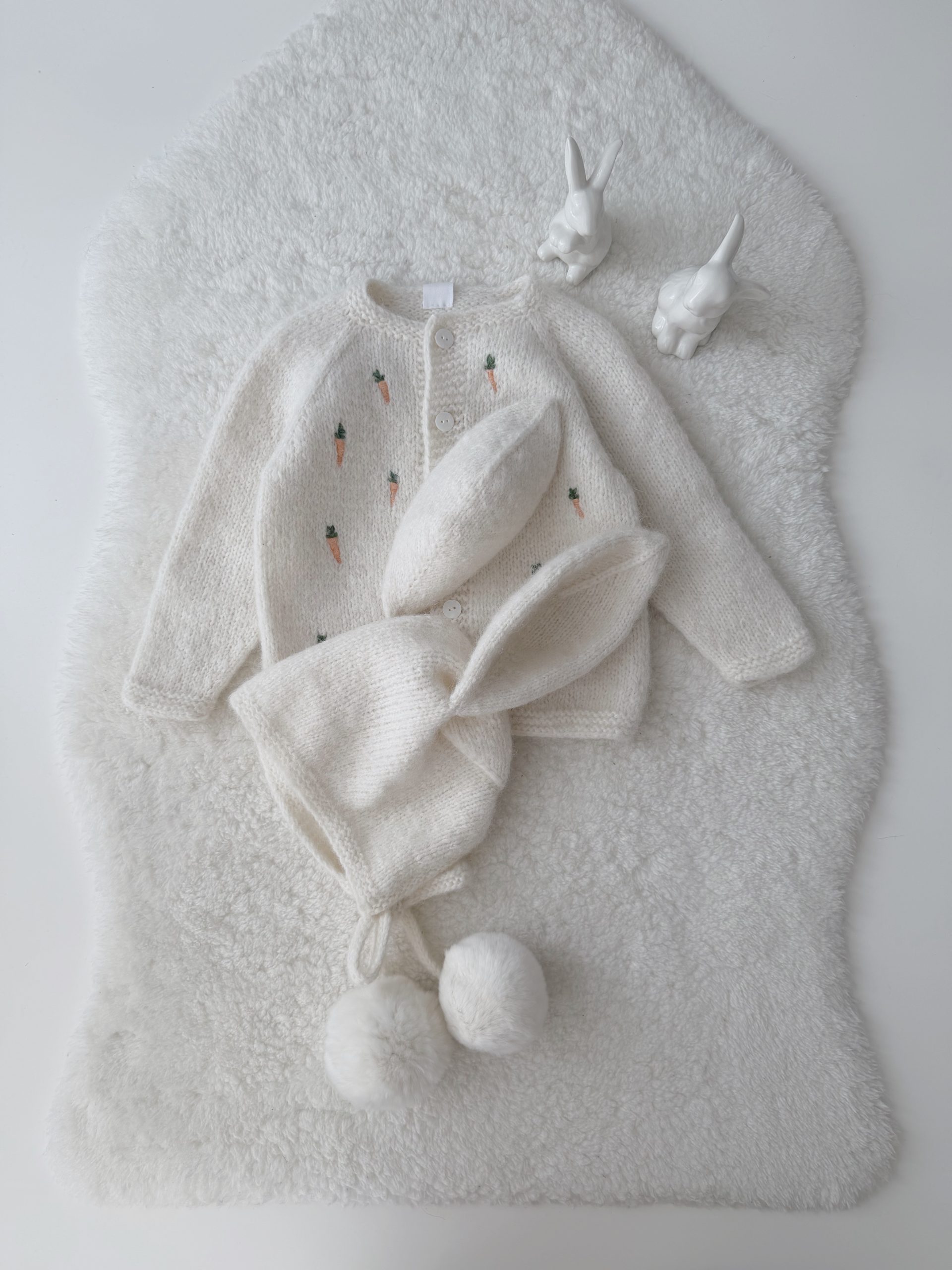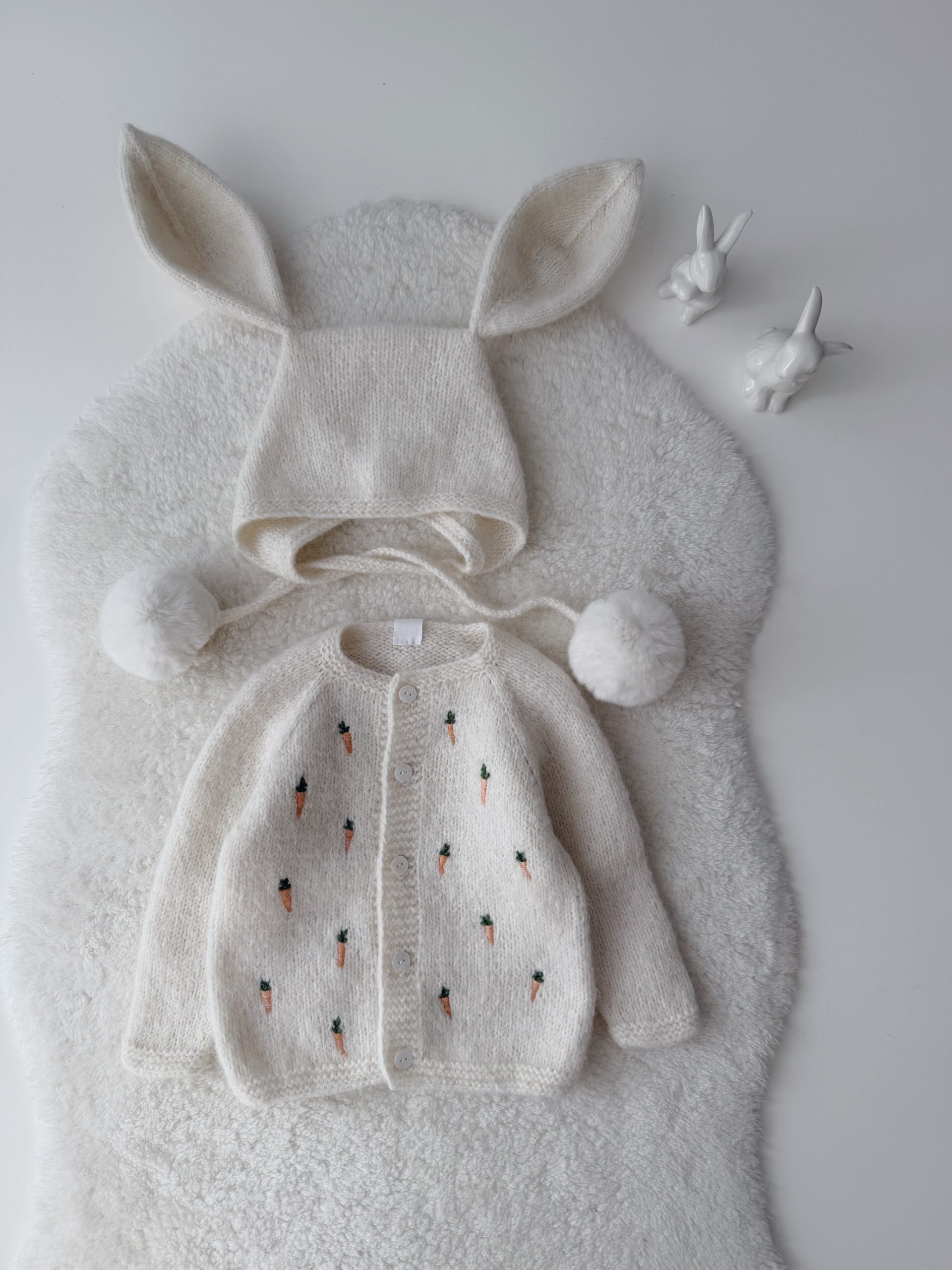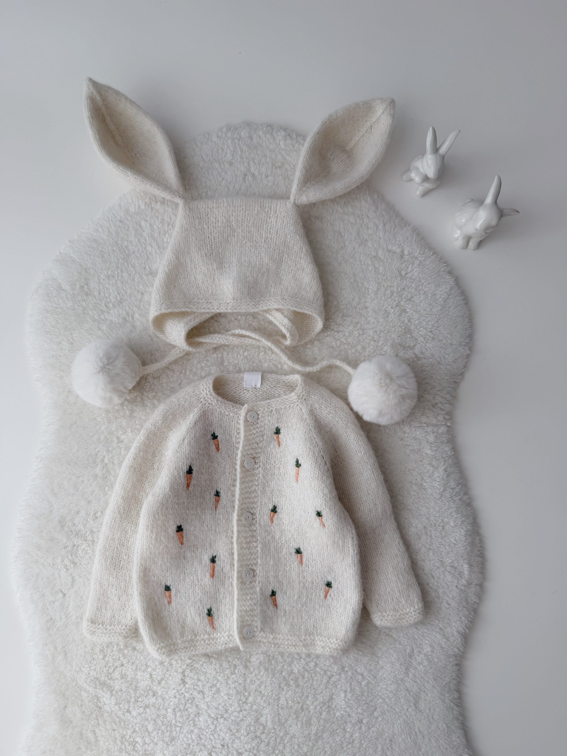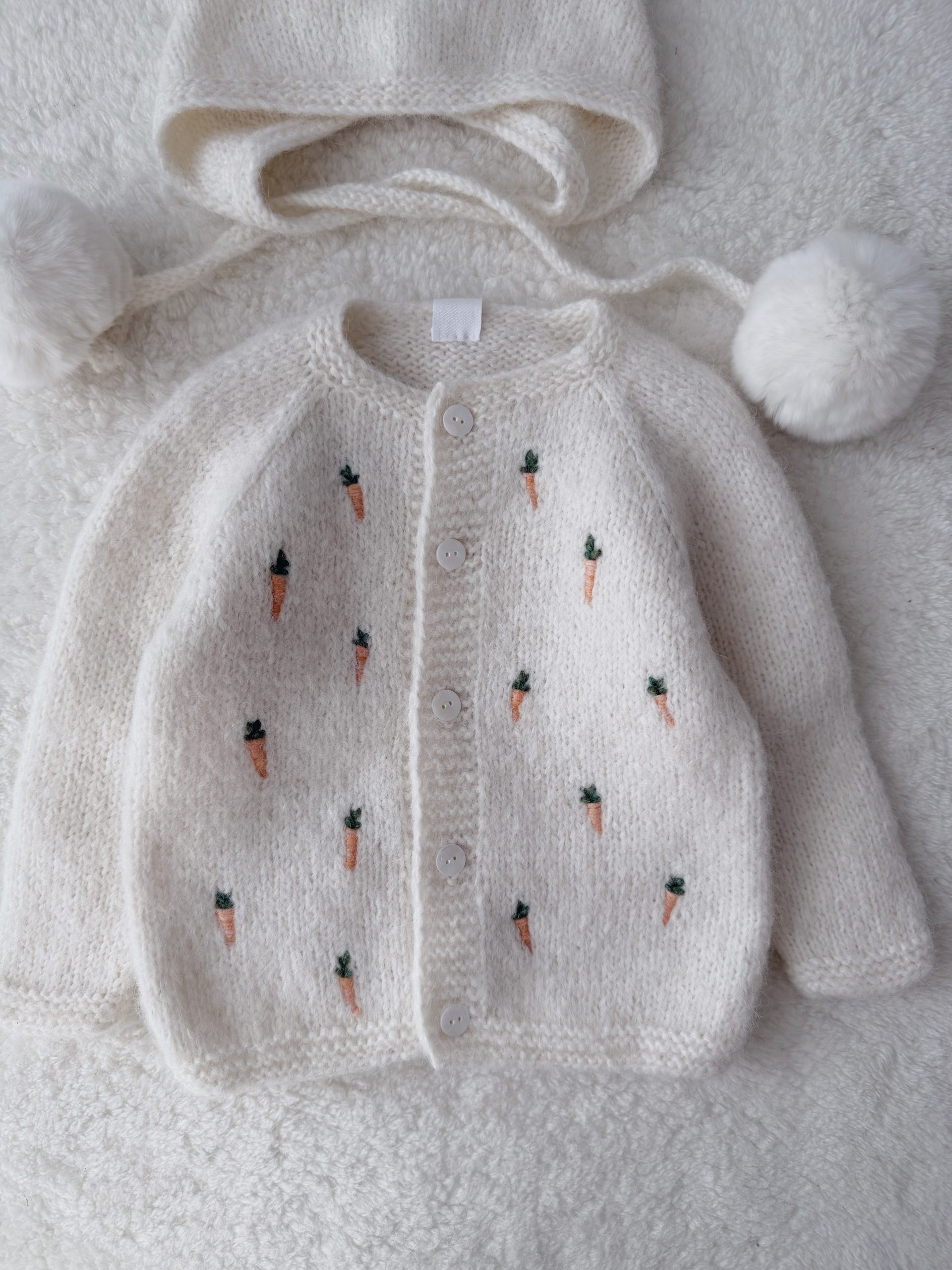 9-12 months Embroidered Baby Cardigan and Bonnet Set – Cream Alpaca Knit – Easter outfit