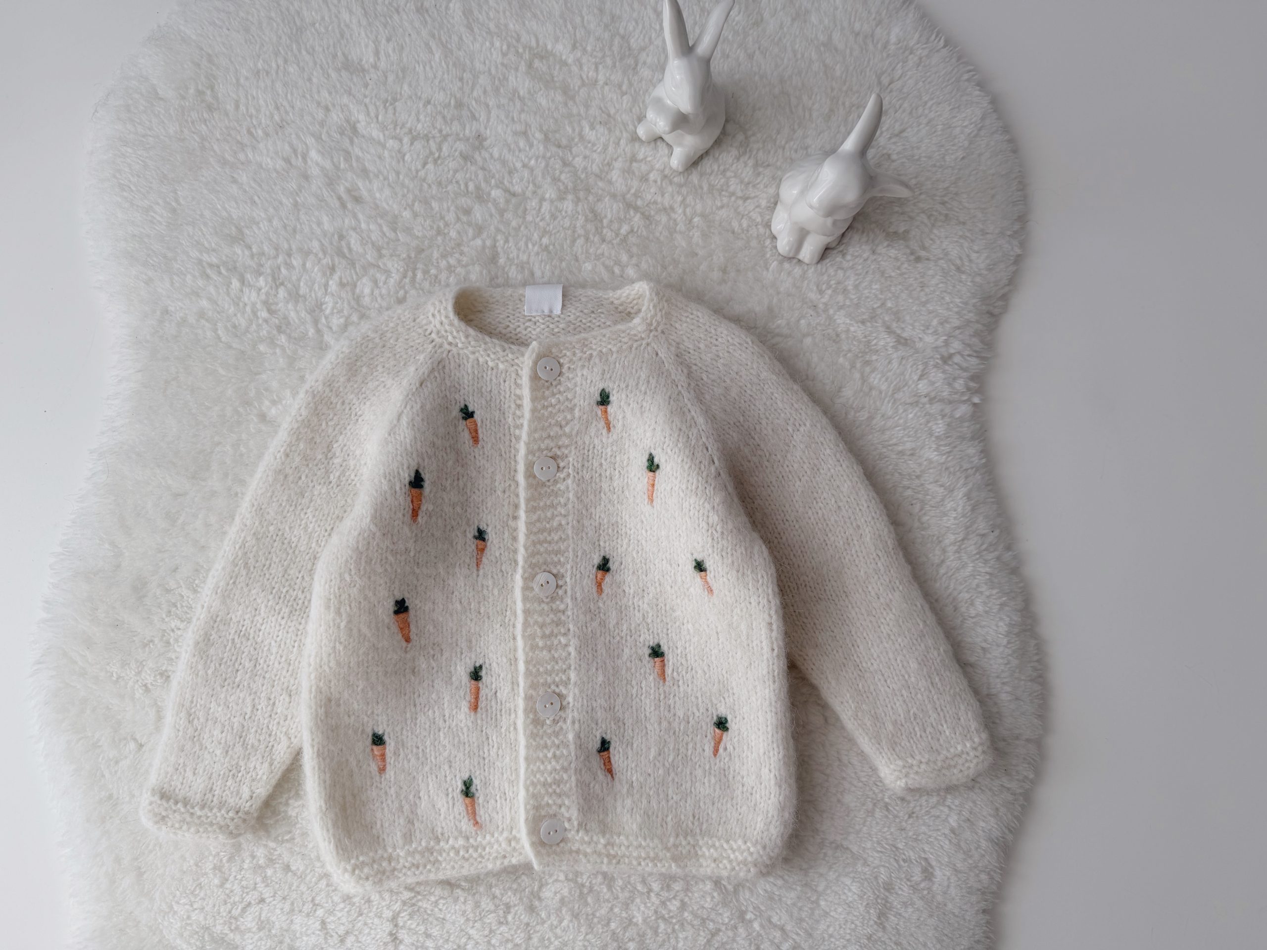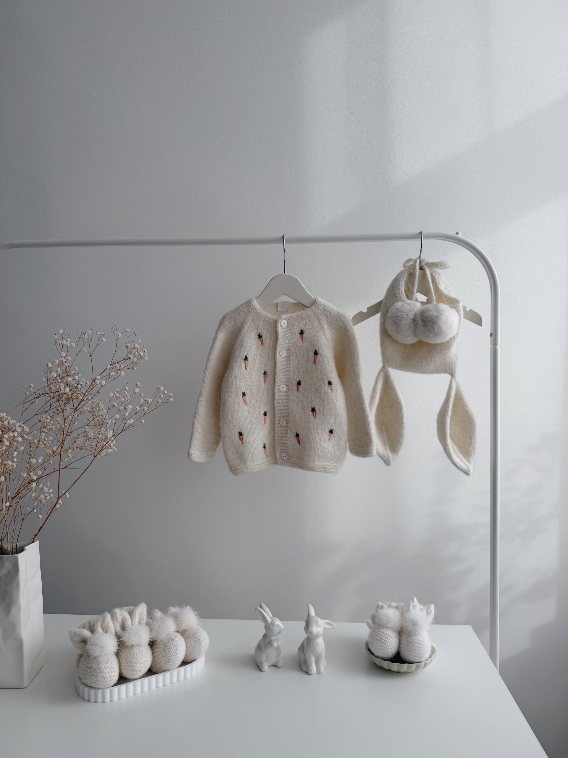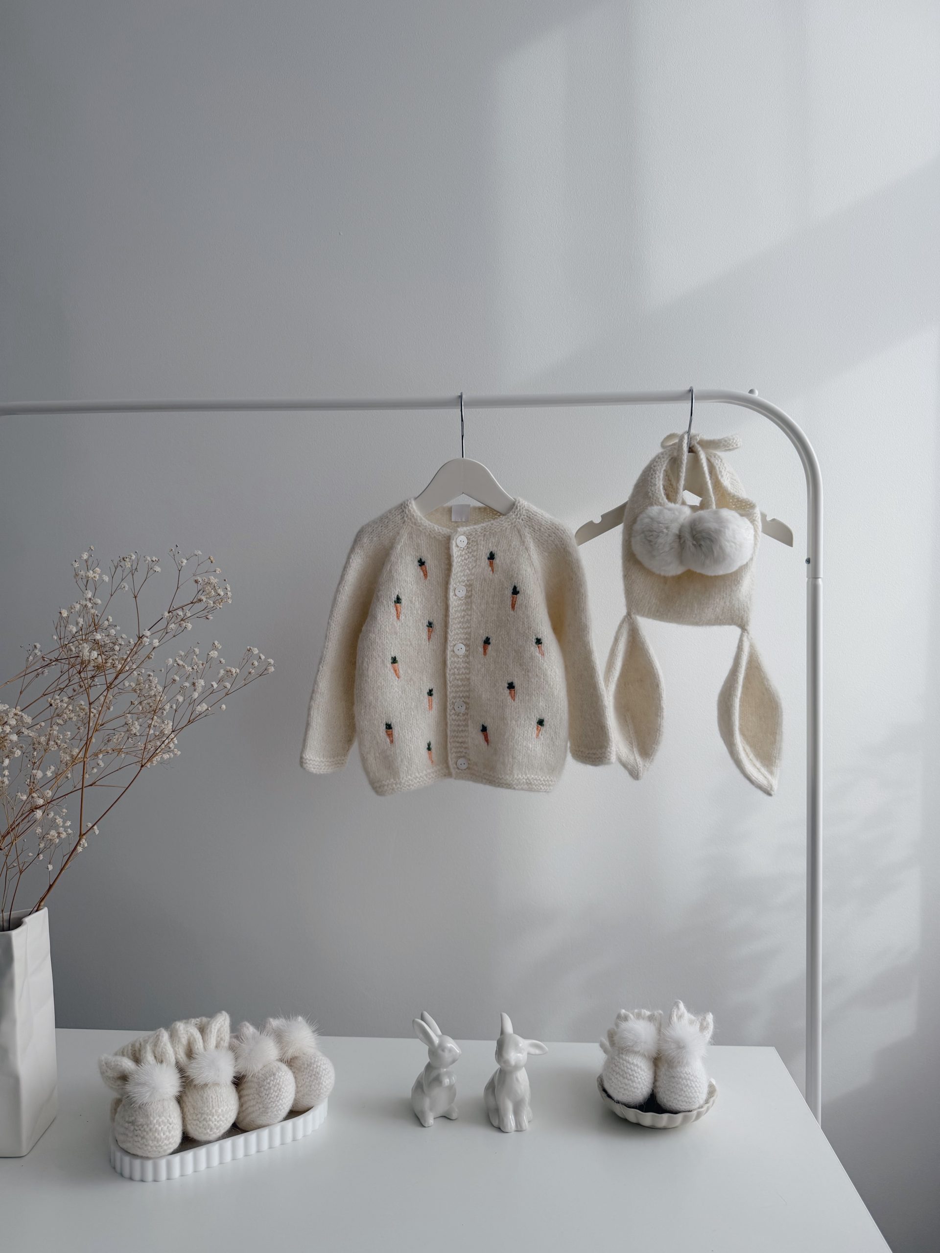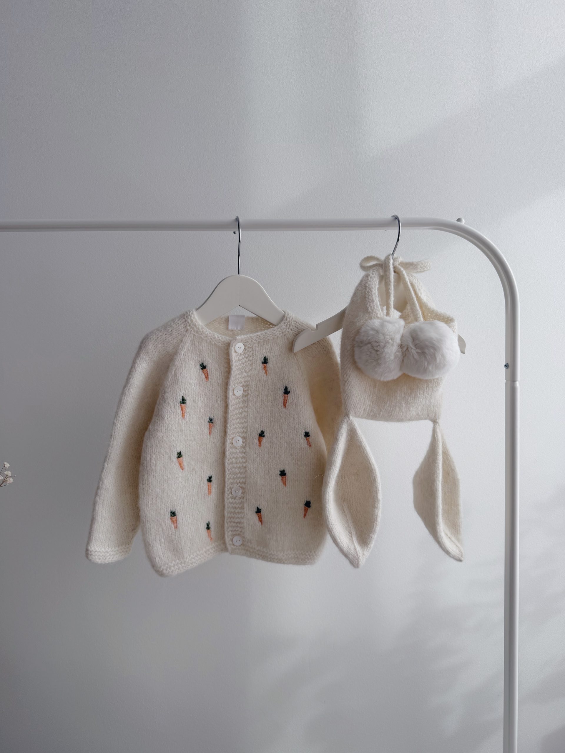 9-12 months Embroidered Baby Cardigan and Bonnet Set – Cream Alpaca Knit – Easter outfit