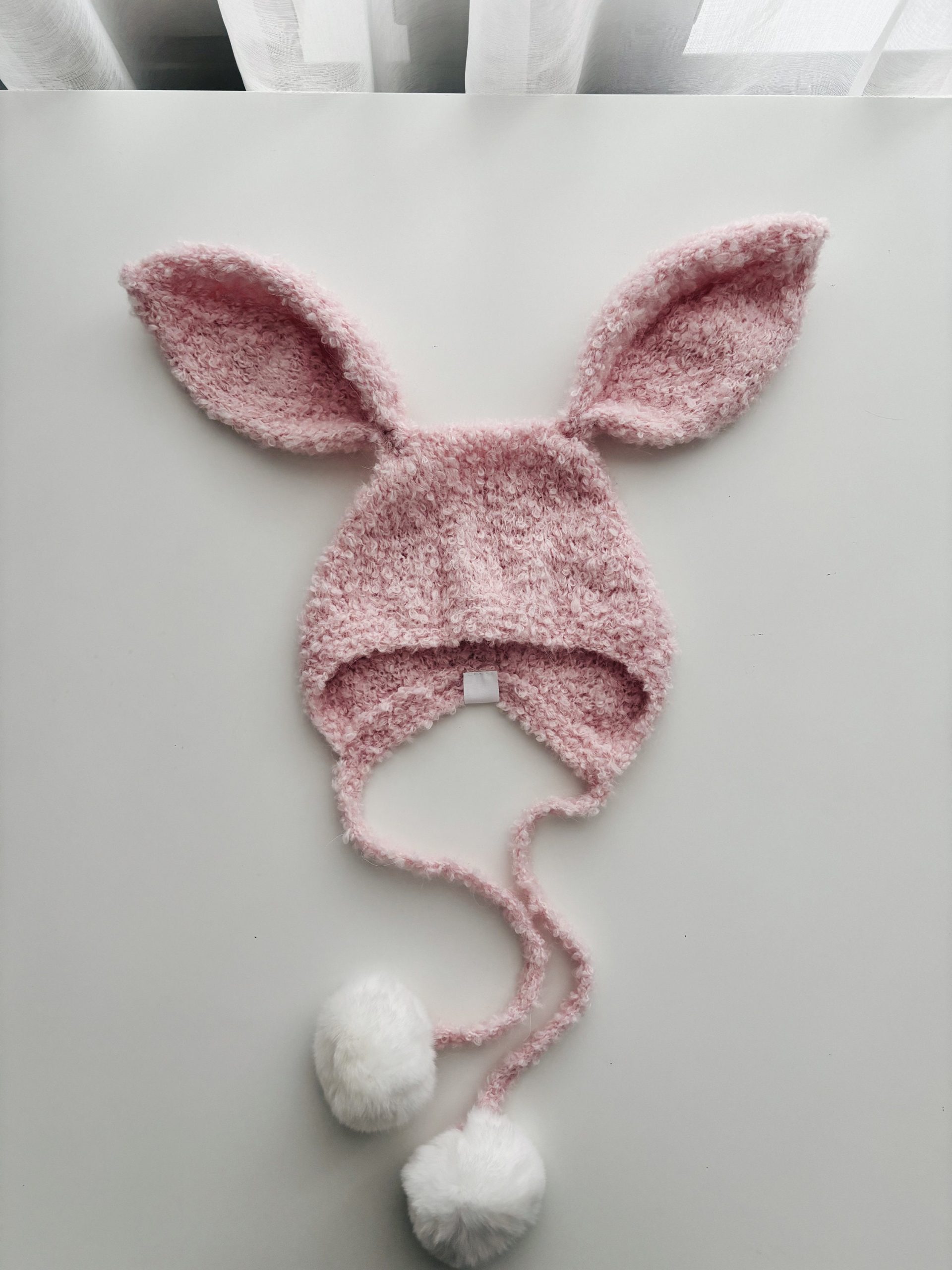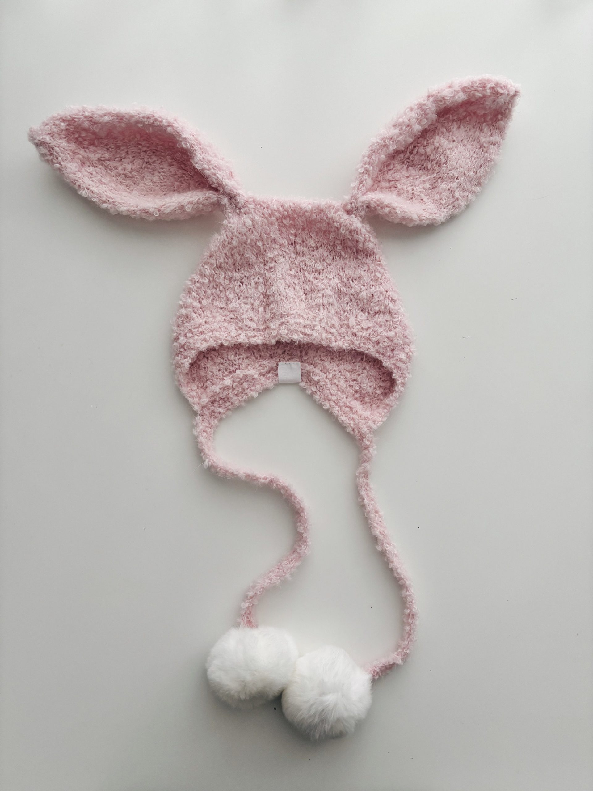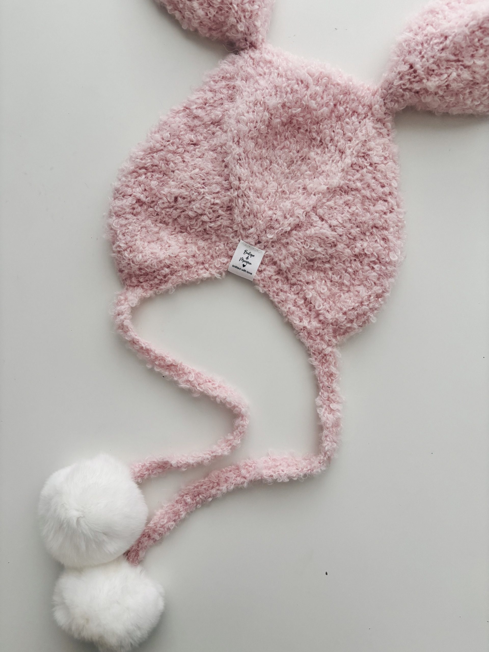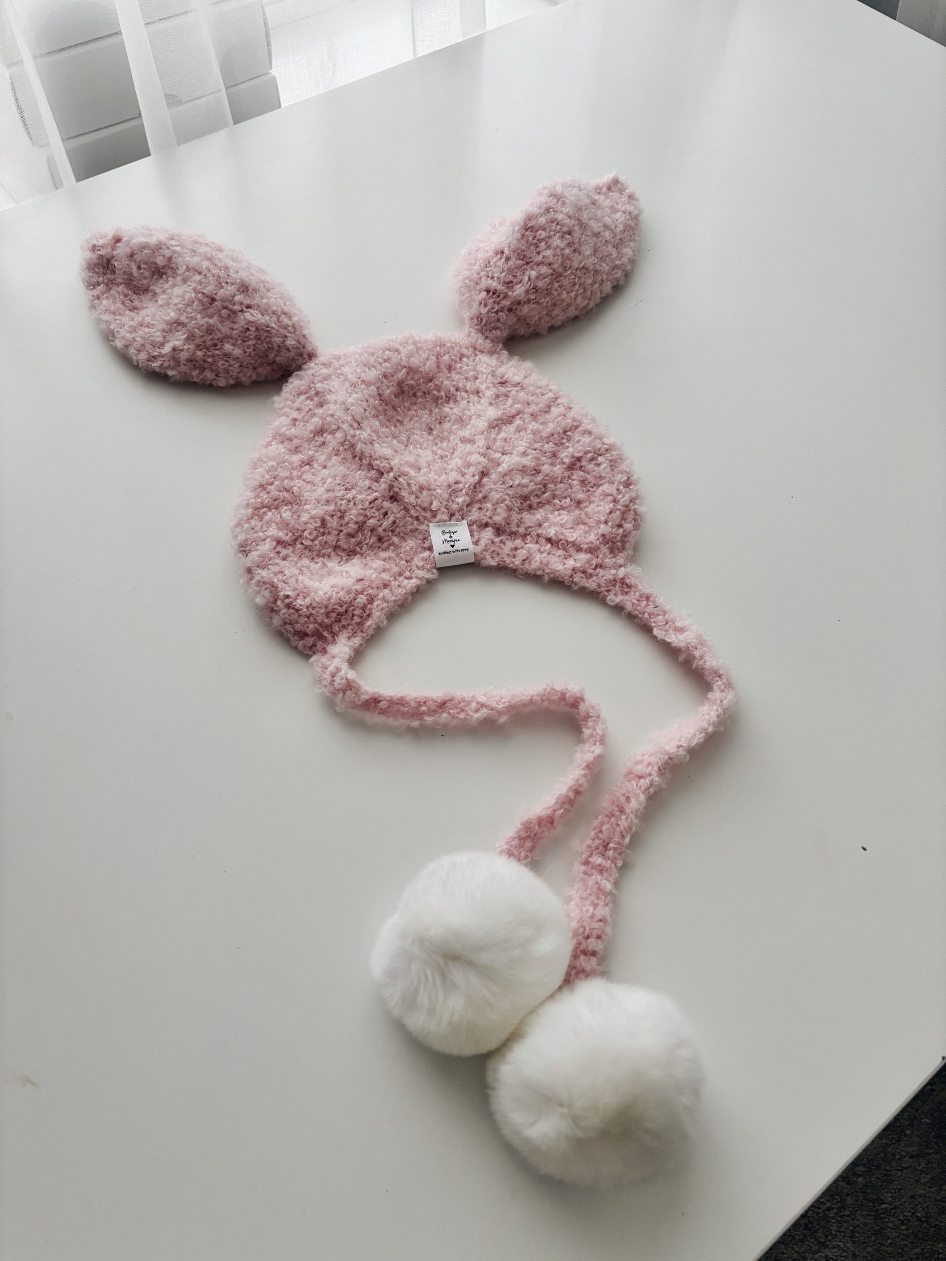 This listing for bunny bonnet with fur pom poms.