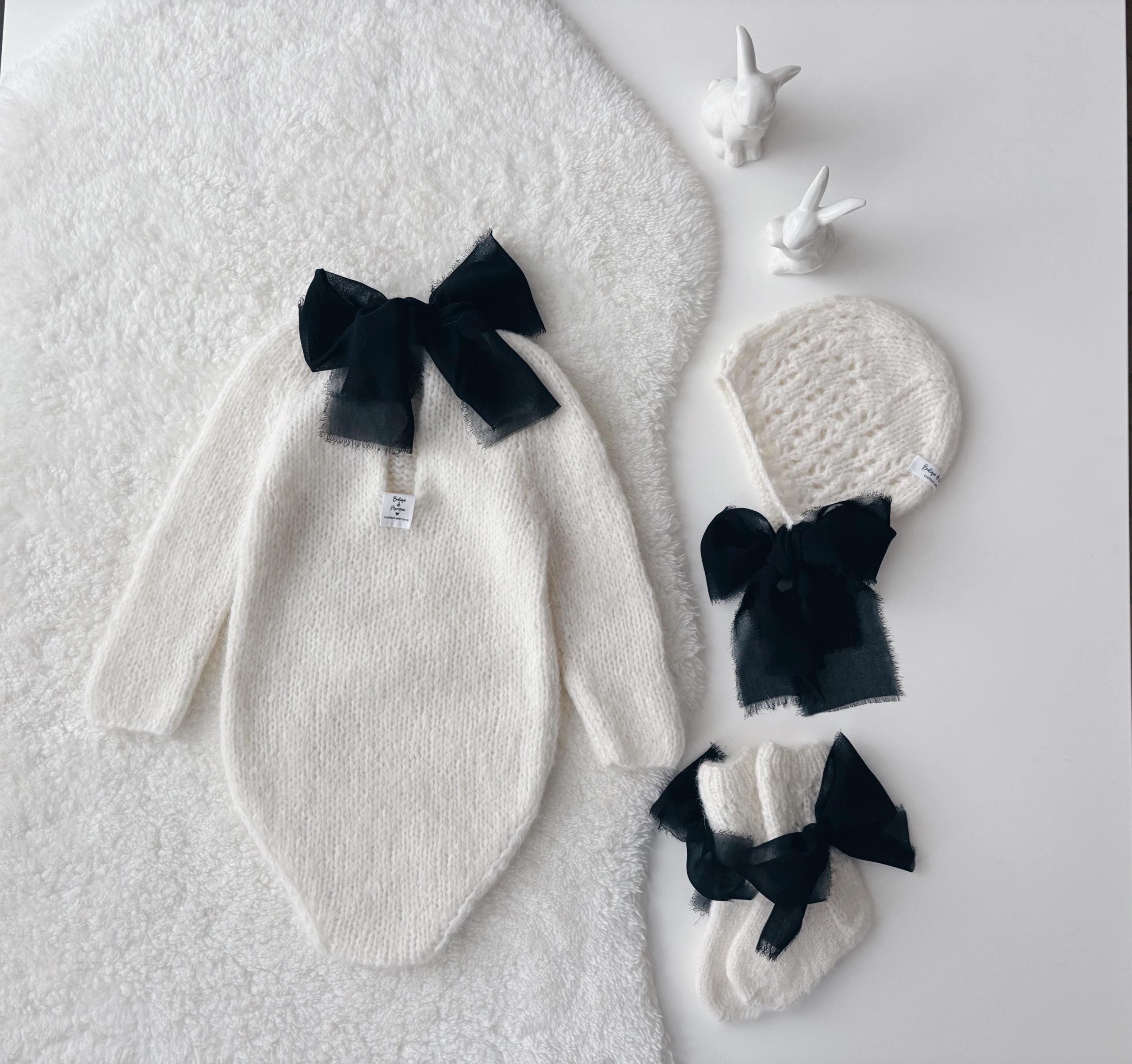 Alpaca Bunny Baby Set – Cream Romper and Bonnet