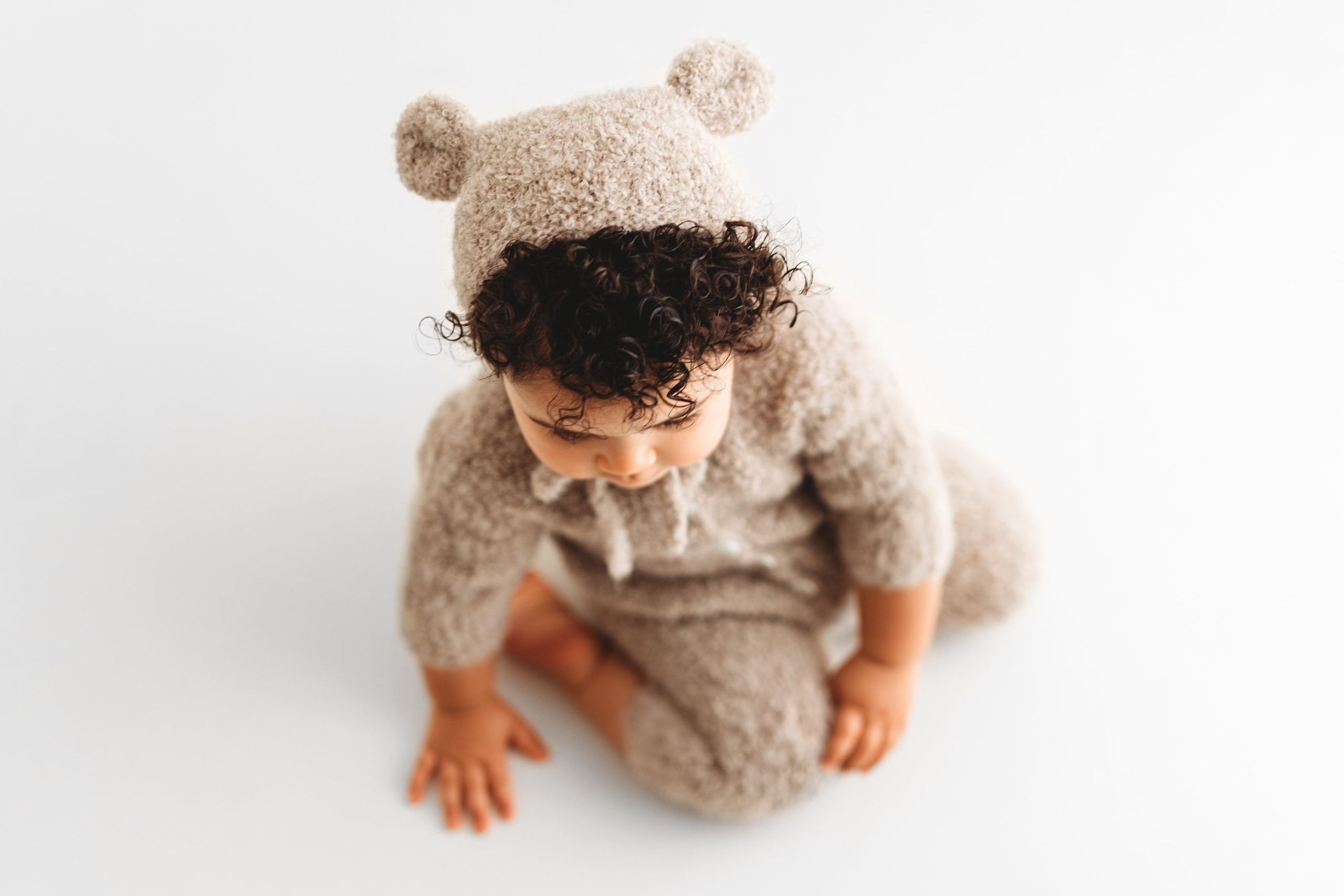 Hand Knit Merino Baby Romper and Bonnet Set – Photo Prop