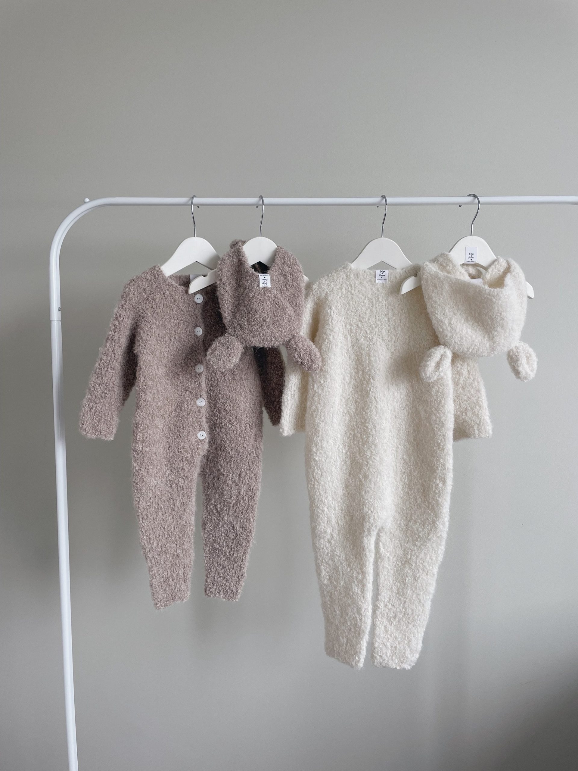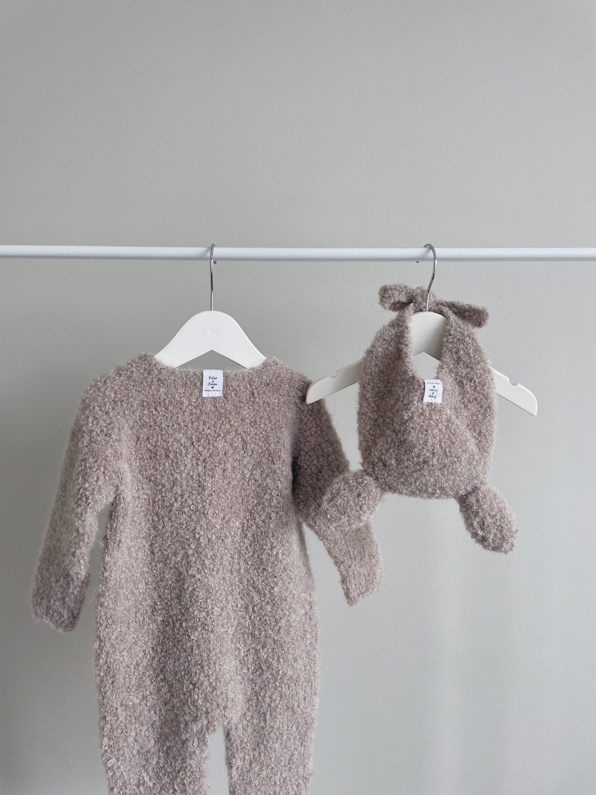 Cotton Knit Baby Romper Set – Cream Bonnet