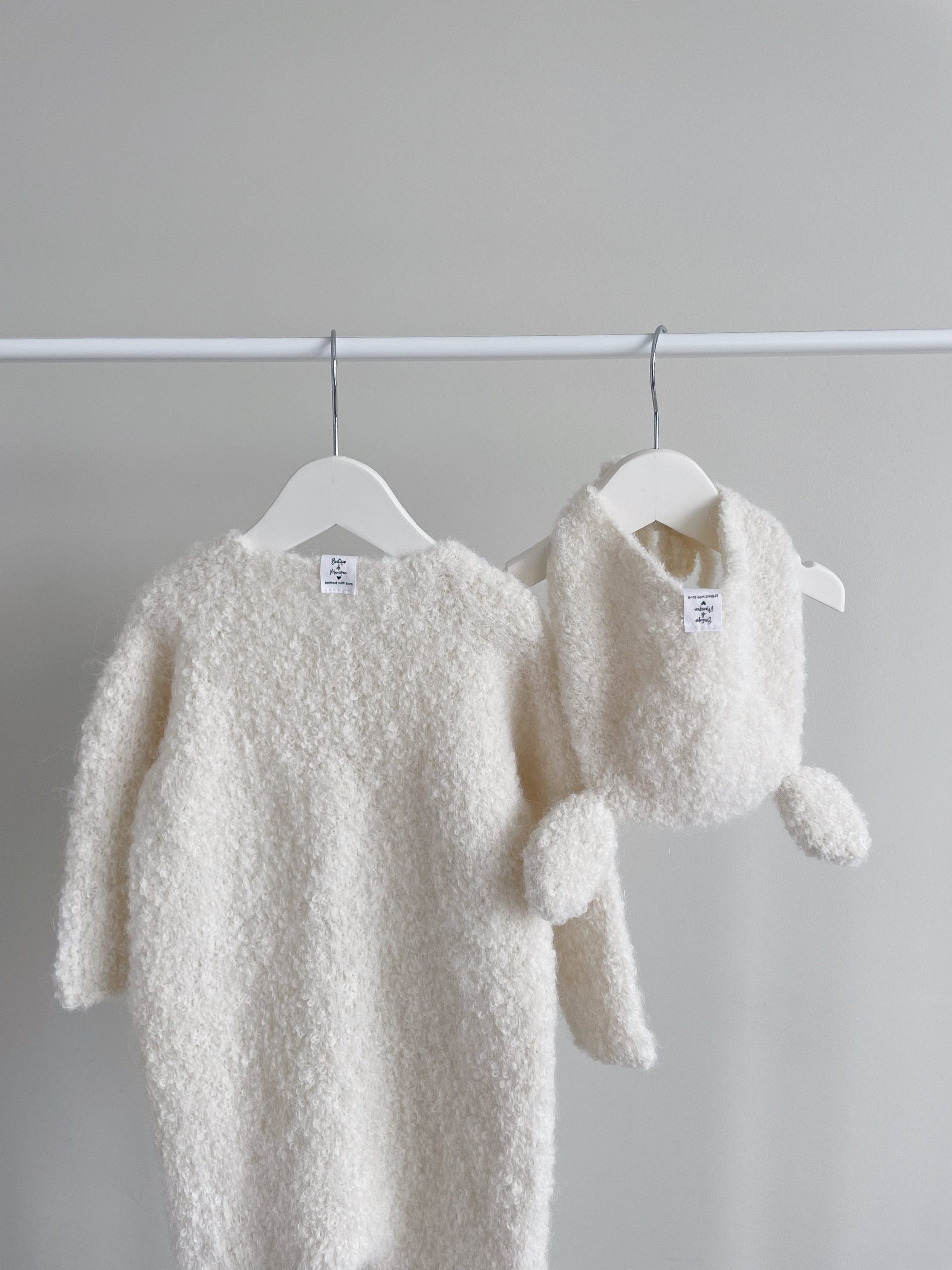 Alpaca Blend Baby Romper & Bonnet Set – Unisex Beige Outfit