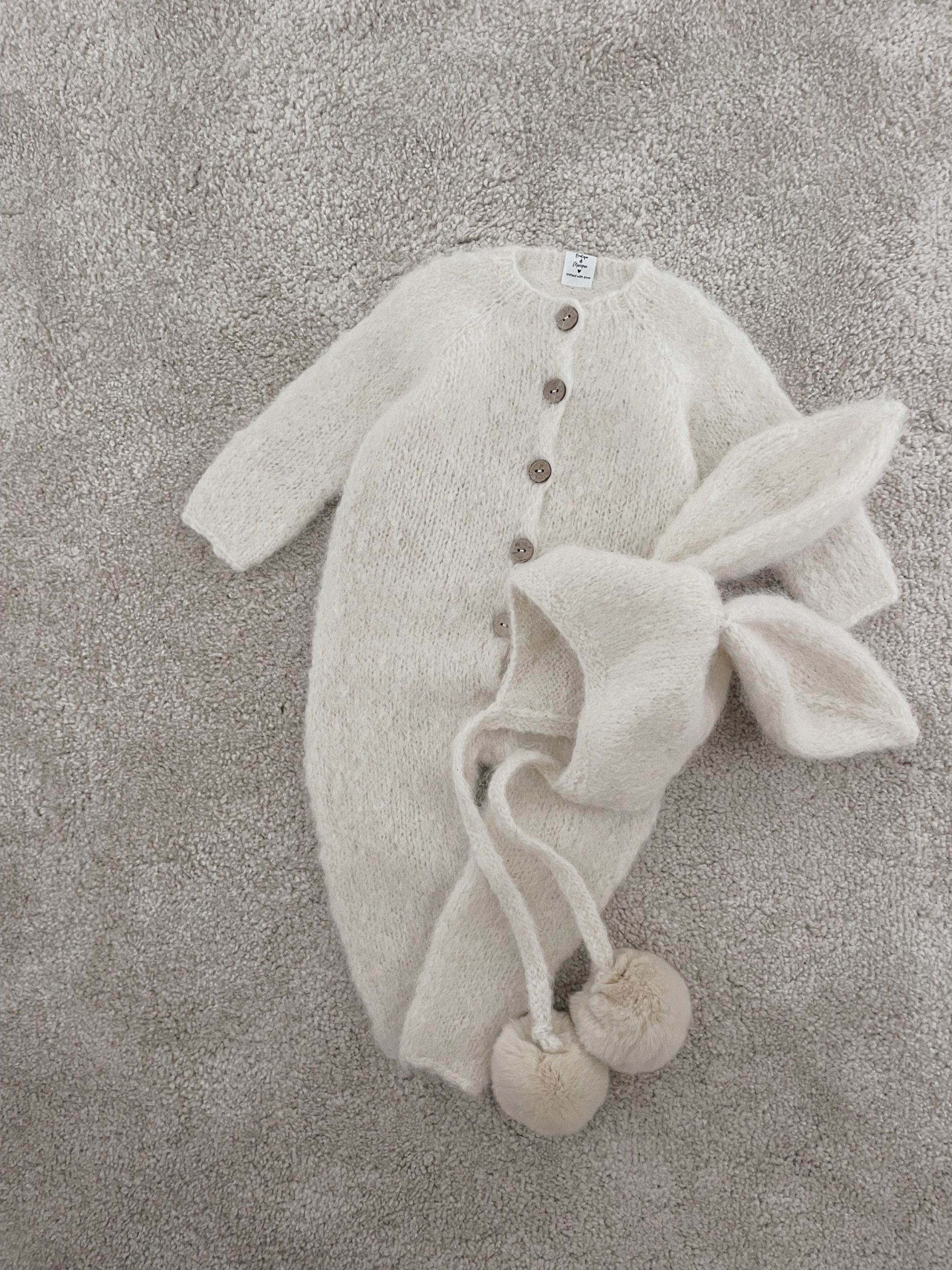 Alpaca Knit Baby Bunny Outfit – Romper and Bonnet Set