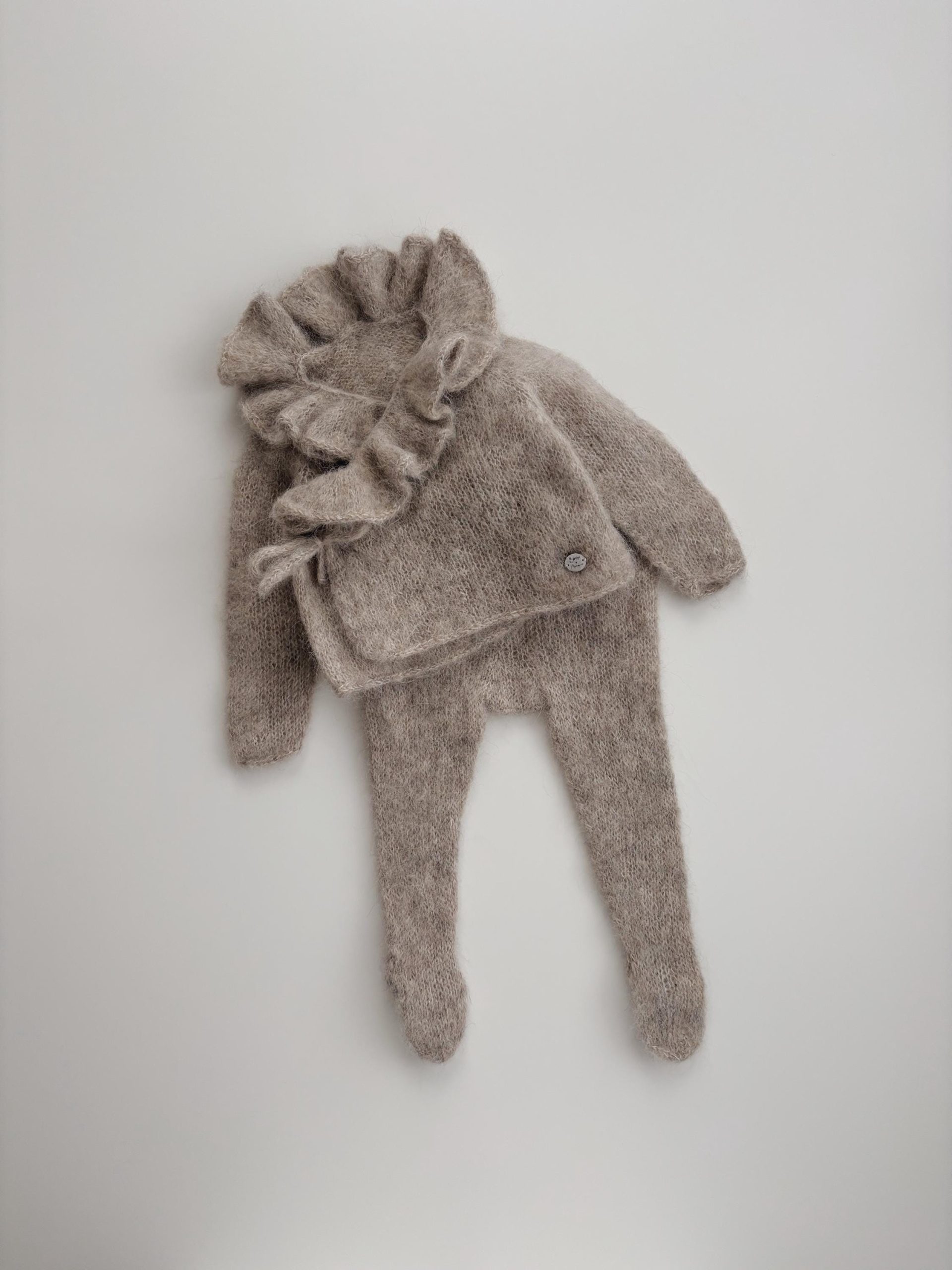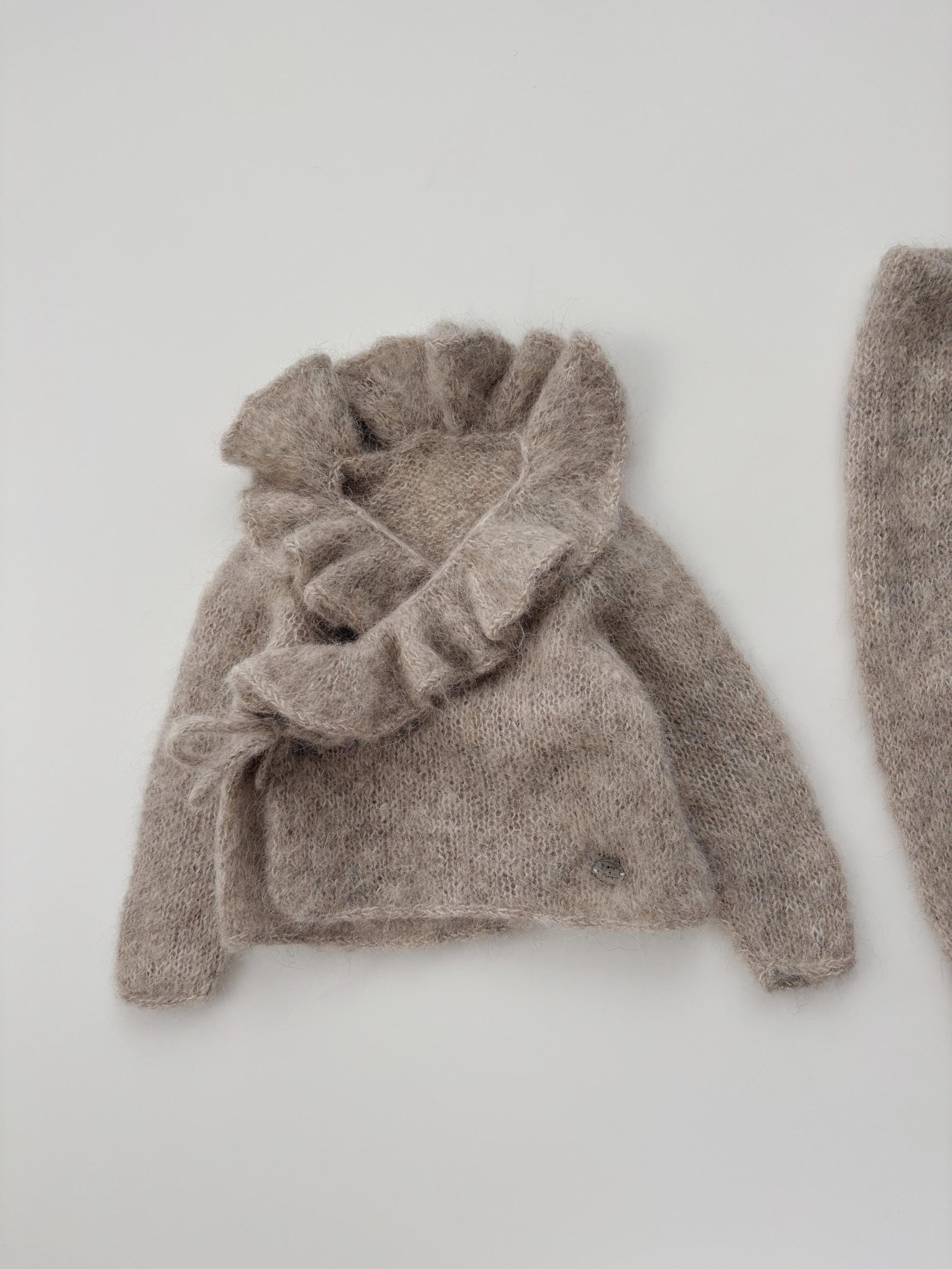 Alpaca Silk Baby Outfit – Ruffle Cardigan & Pants Set