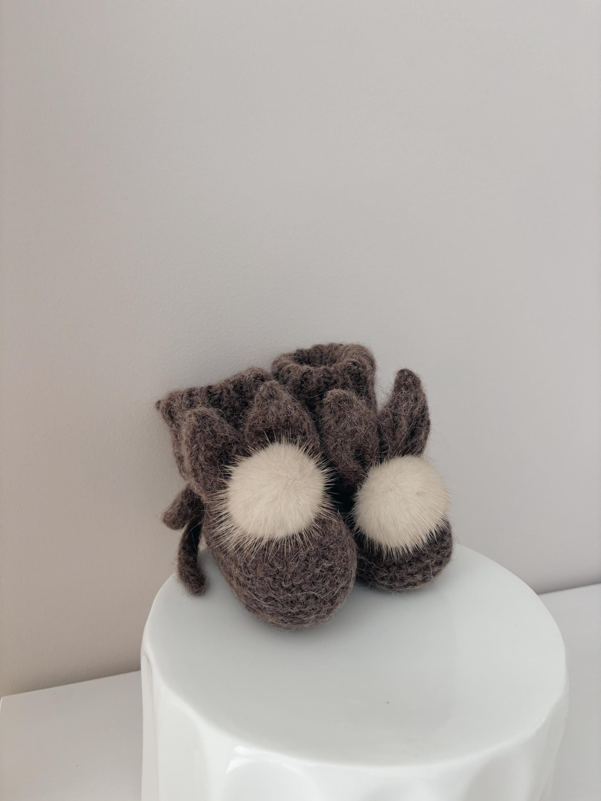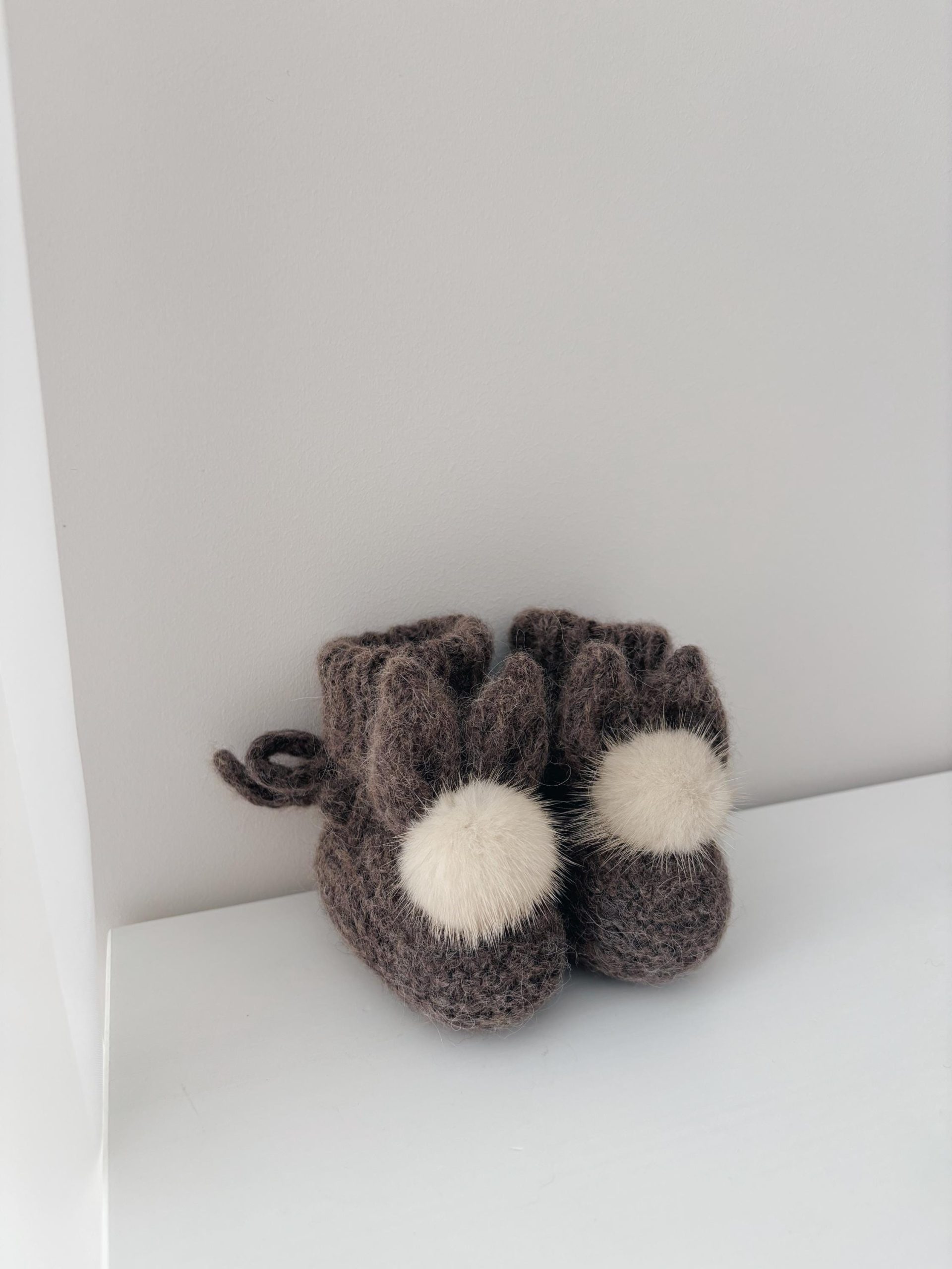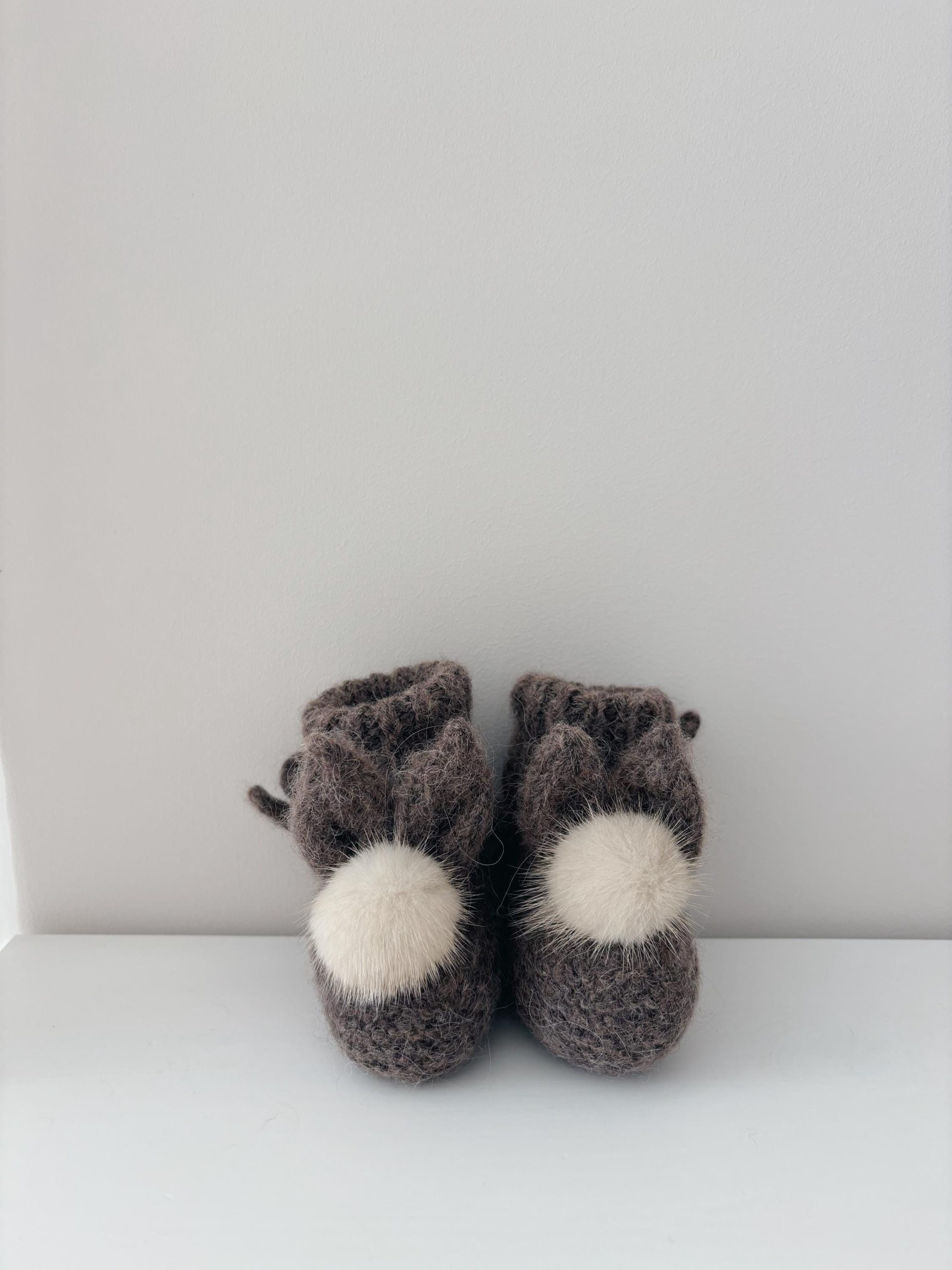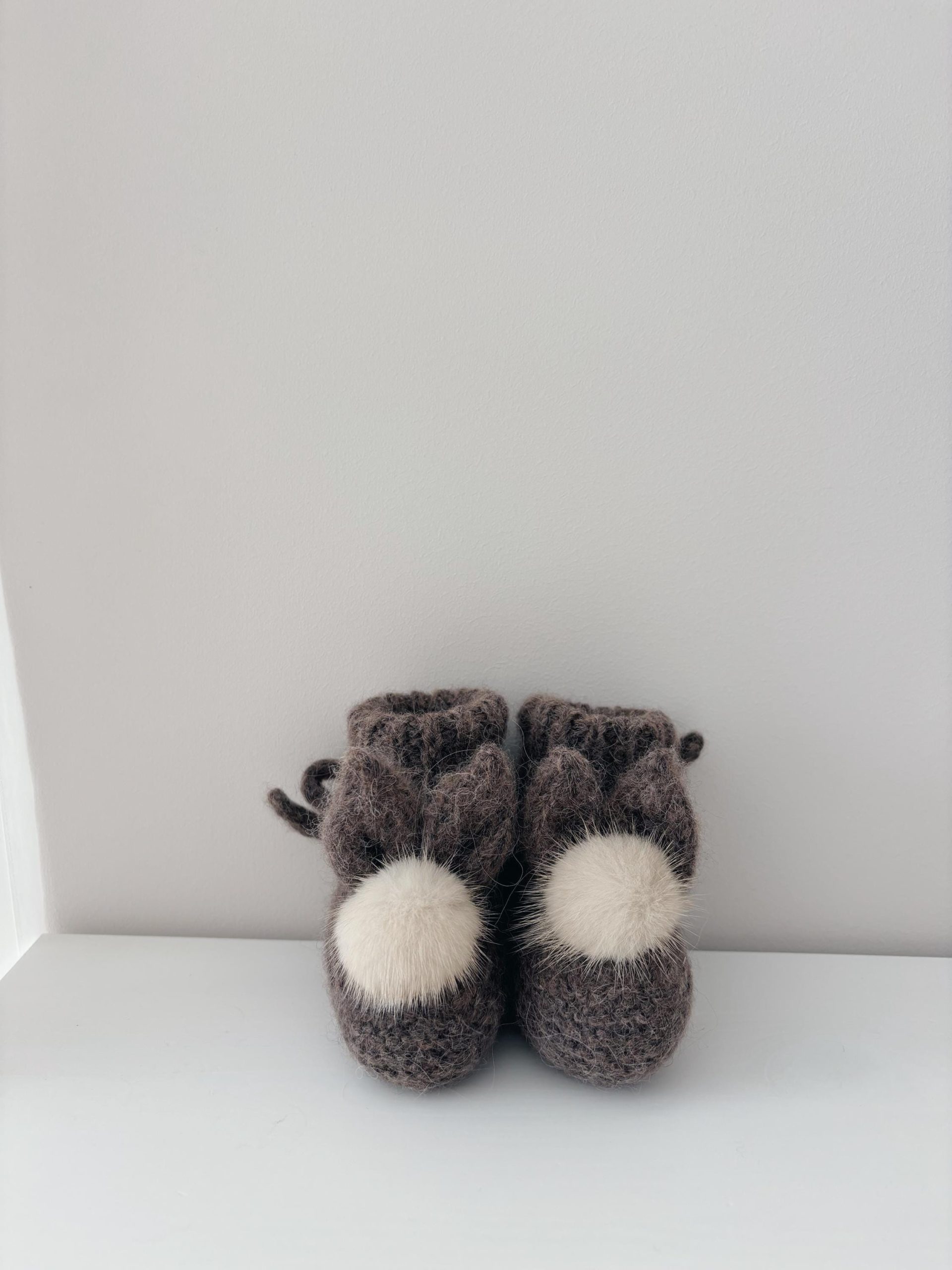 Baby bunny booties with fur pom poms in milky white color – Photography props