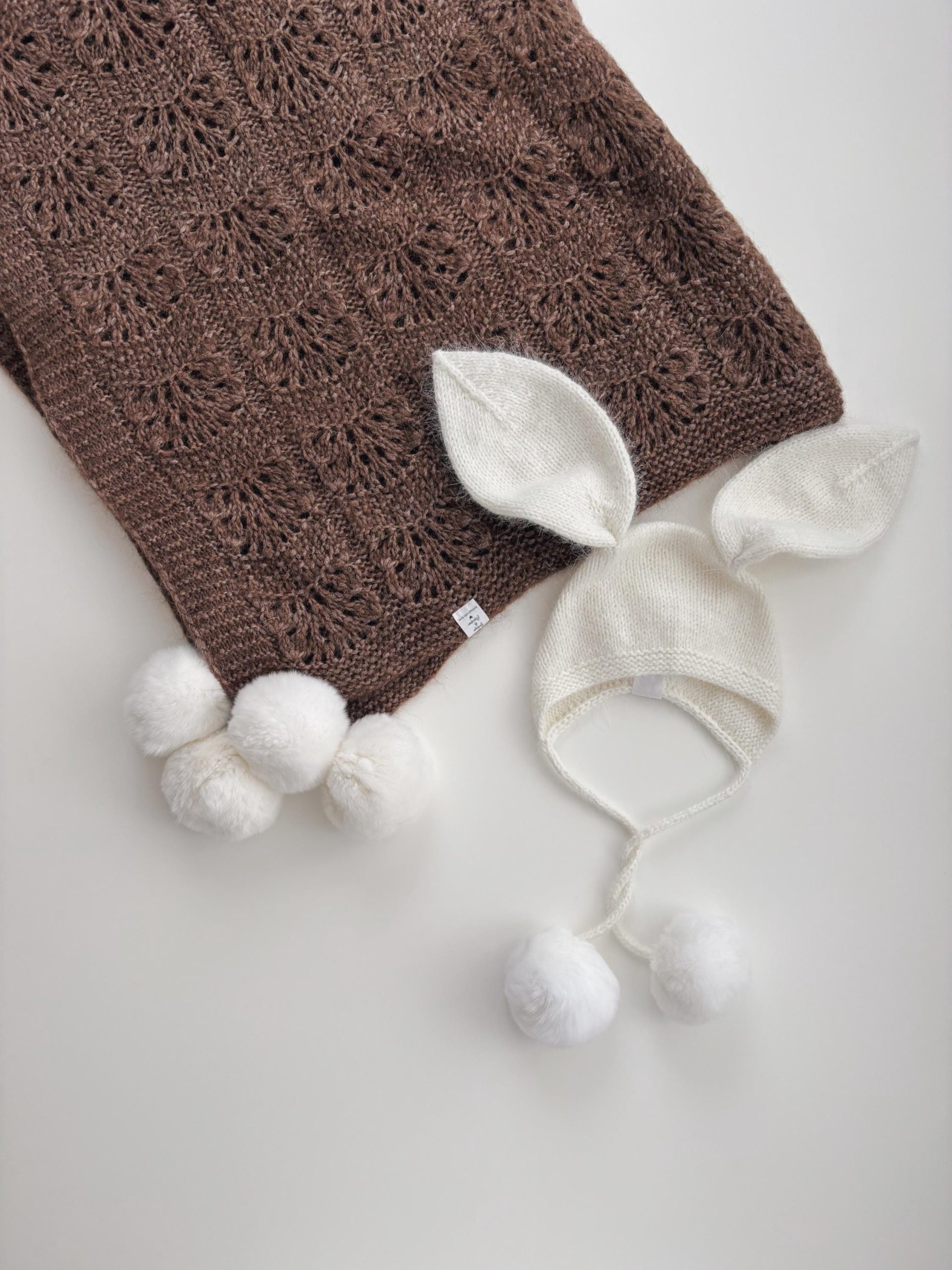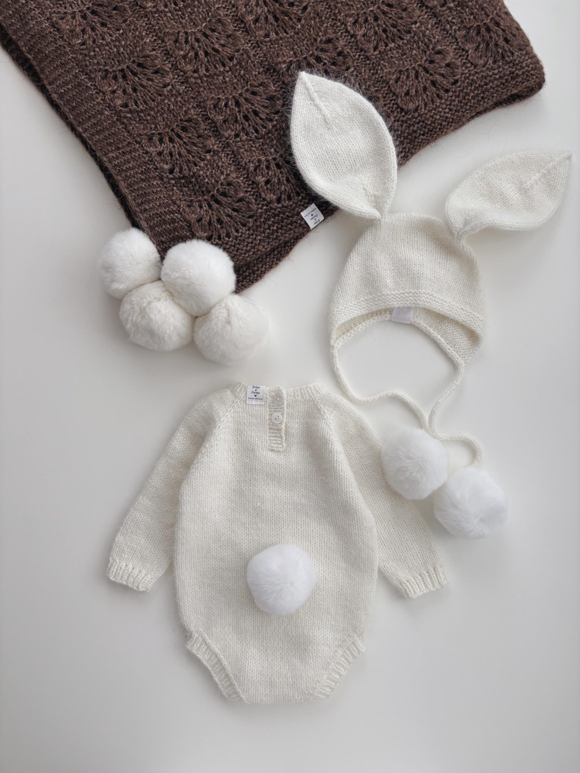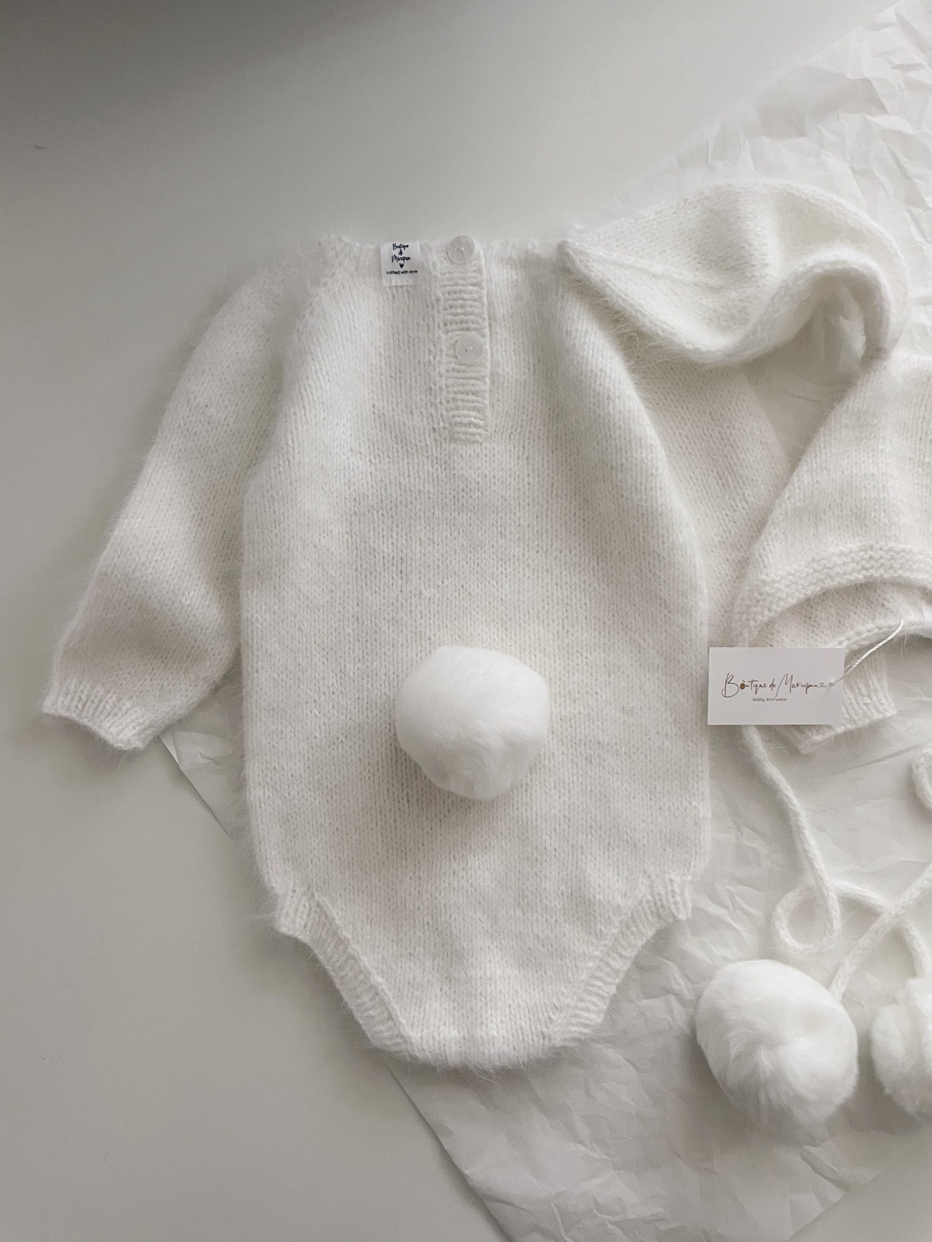 Alpaca Knit Baby Bunny Outfit – Romper and Bonnet Set