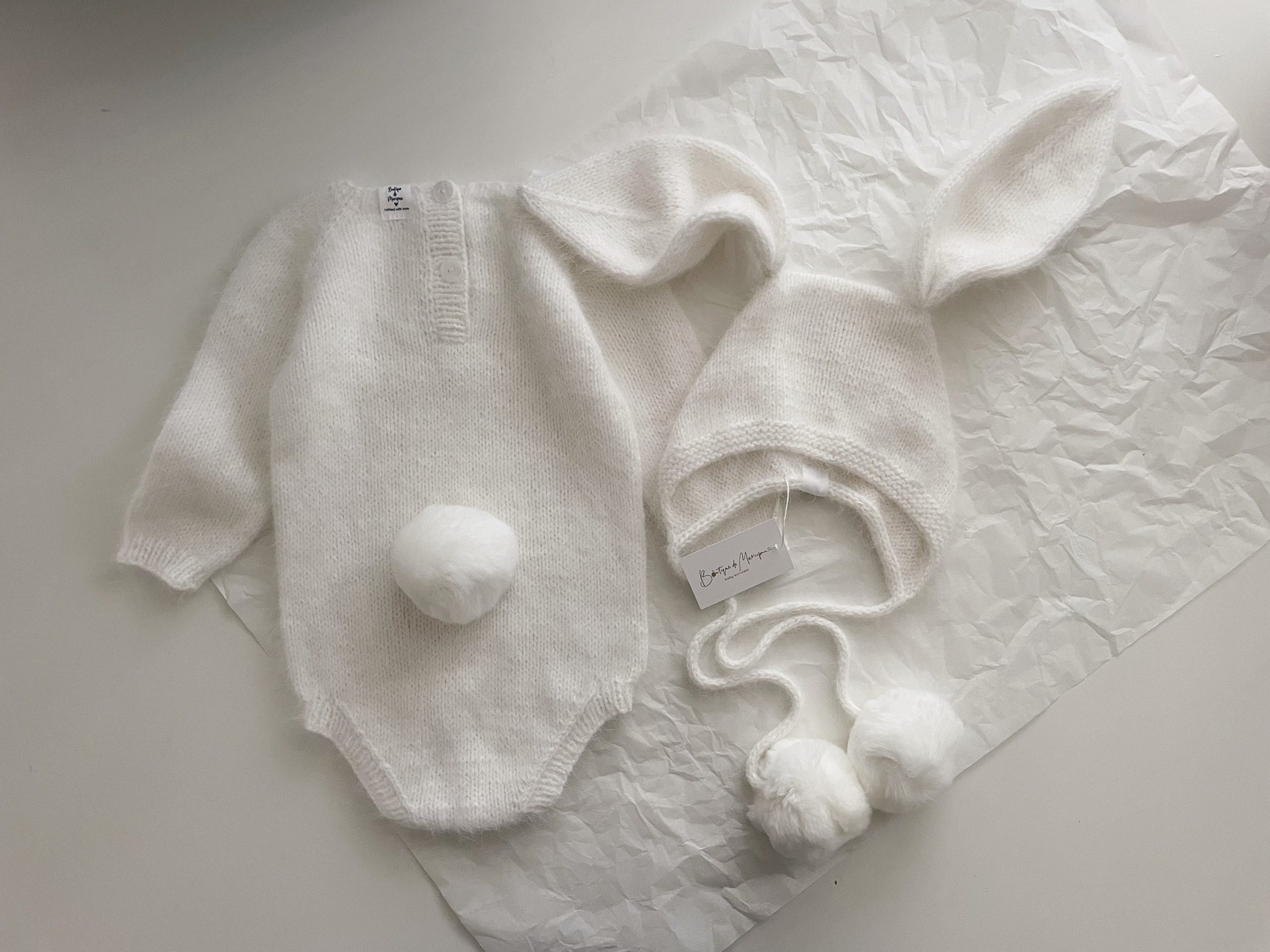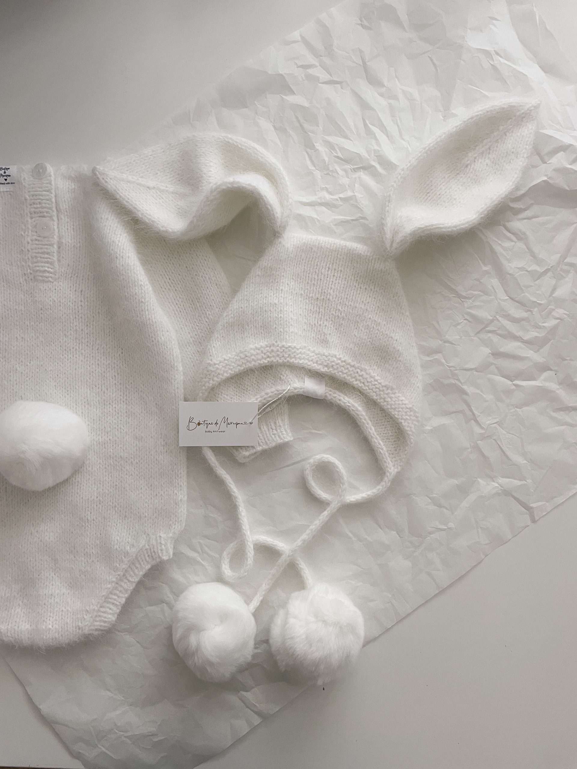 Alpaca Bunny Baby Set – Cream Romper and Bonnet