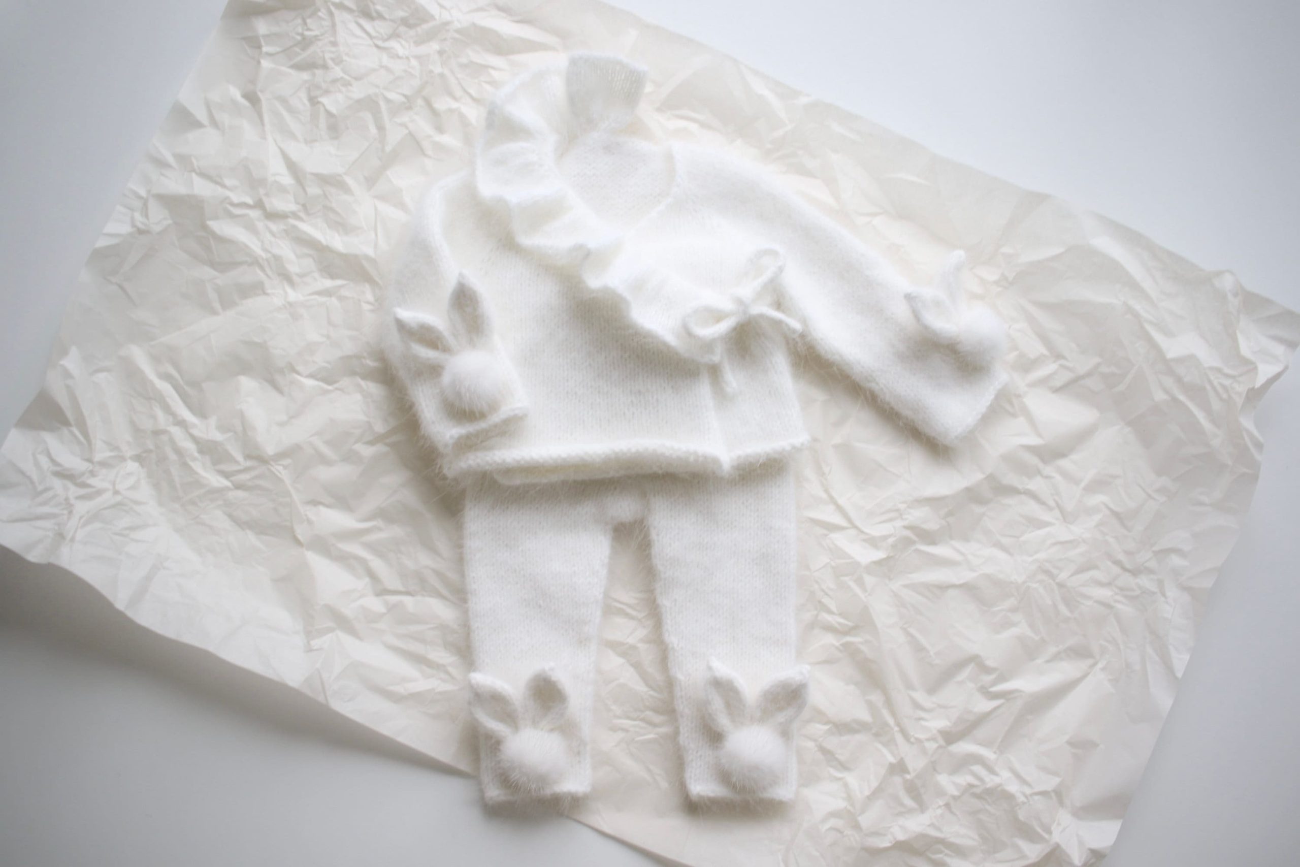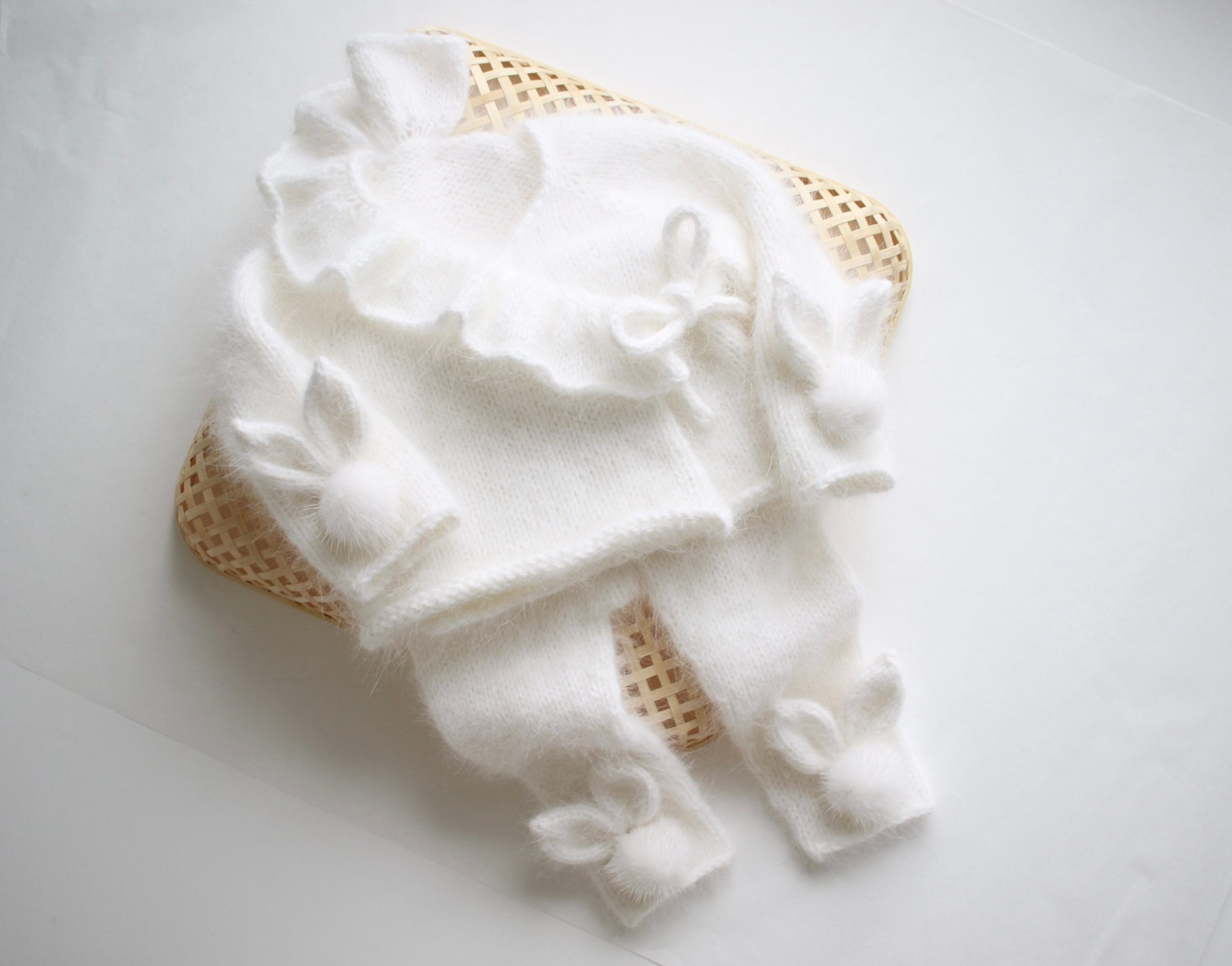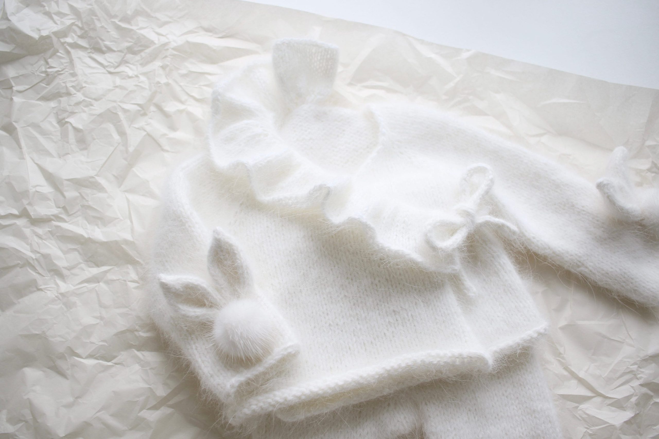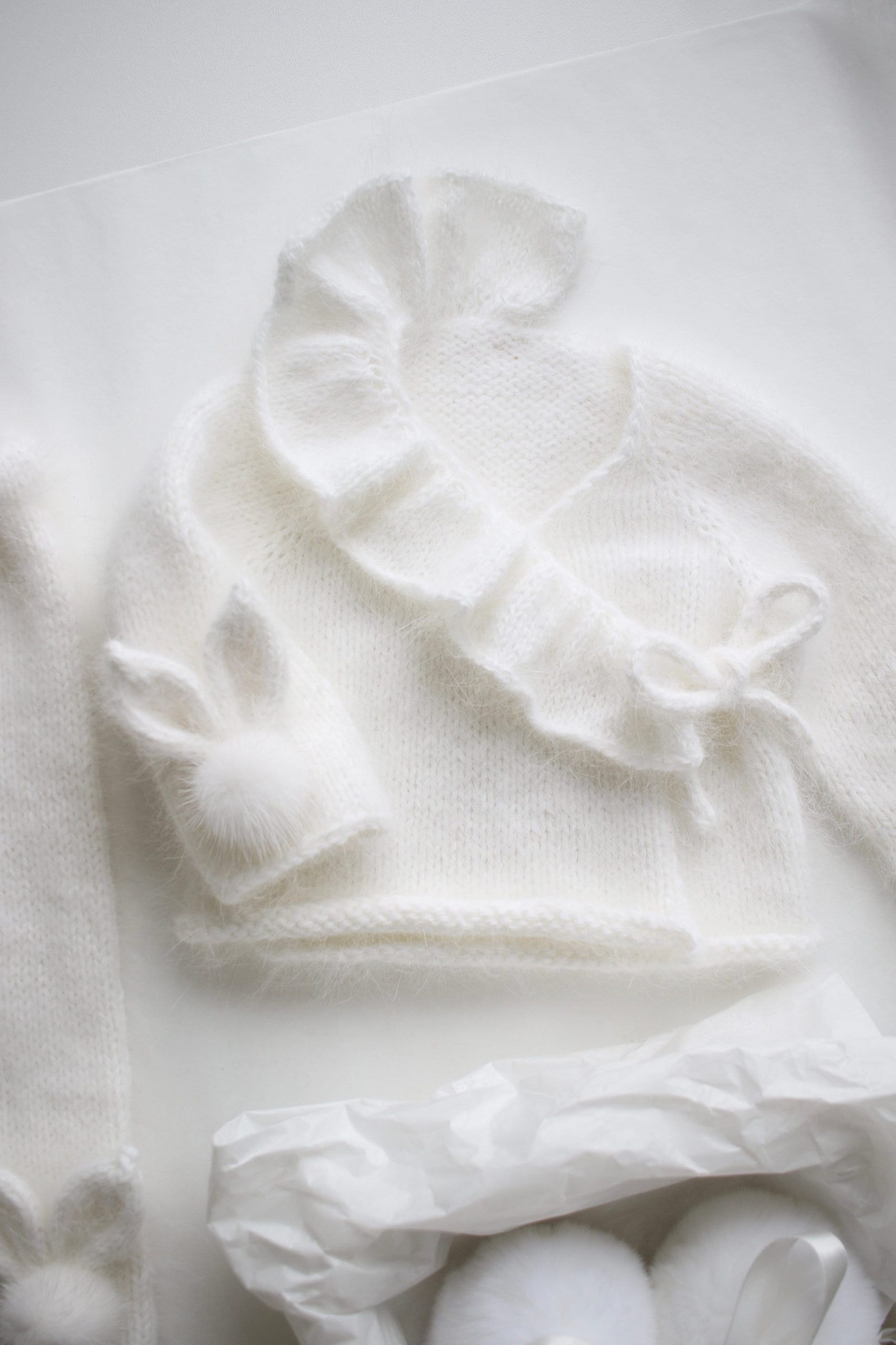 Angora Baby Bunny Set – Ruffle Sweater & Pants, Milky White