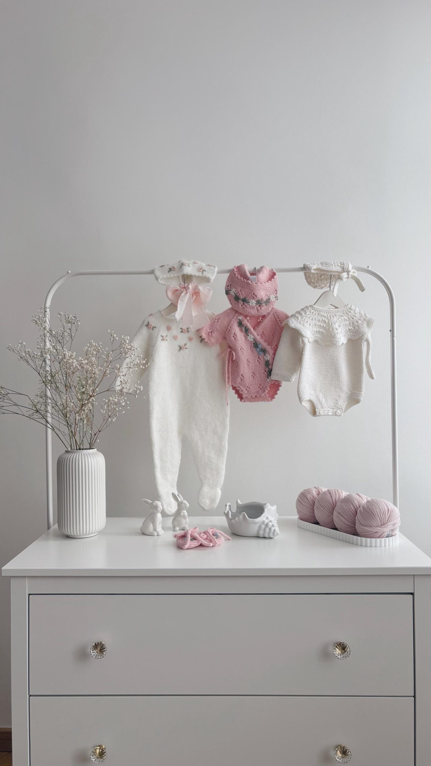 Merino Wool Baby Romper Set – Pink Popcorn Knit Outfit