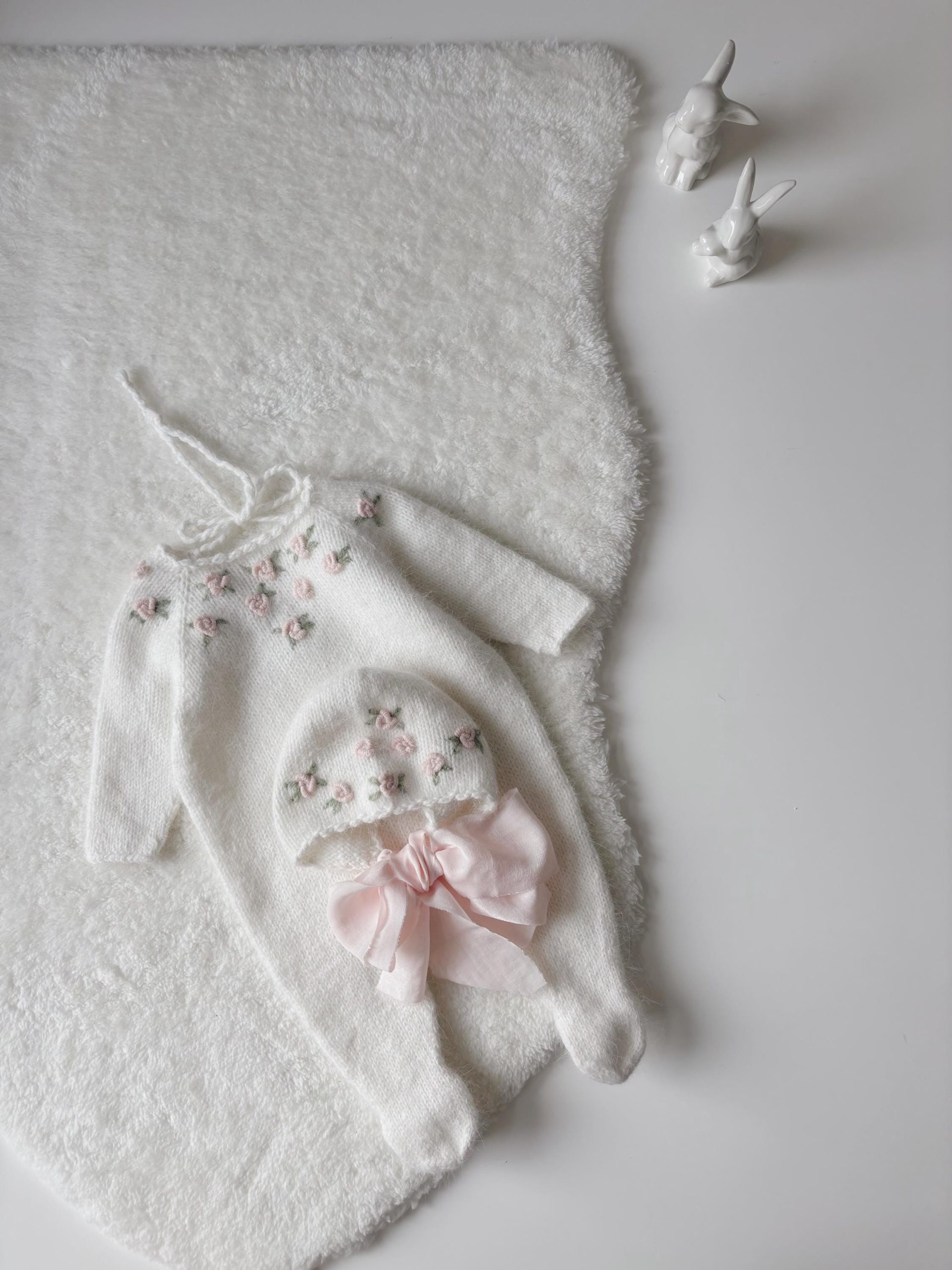 Knit Baby Alpaca Romper and Bonnet Set – Newborn Photo Prop