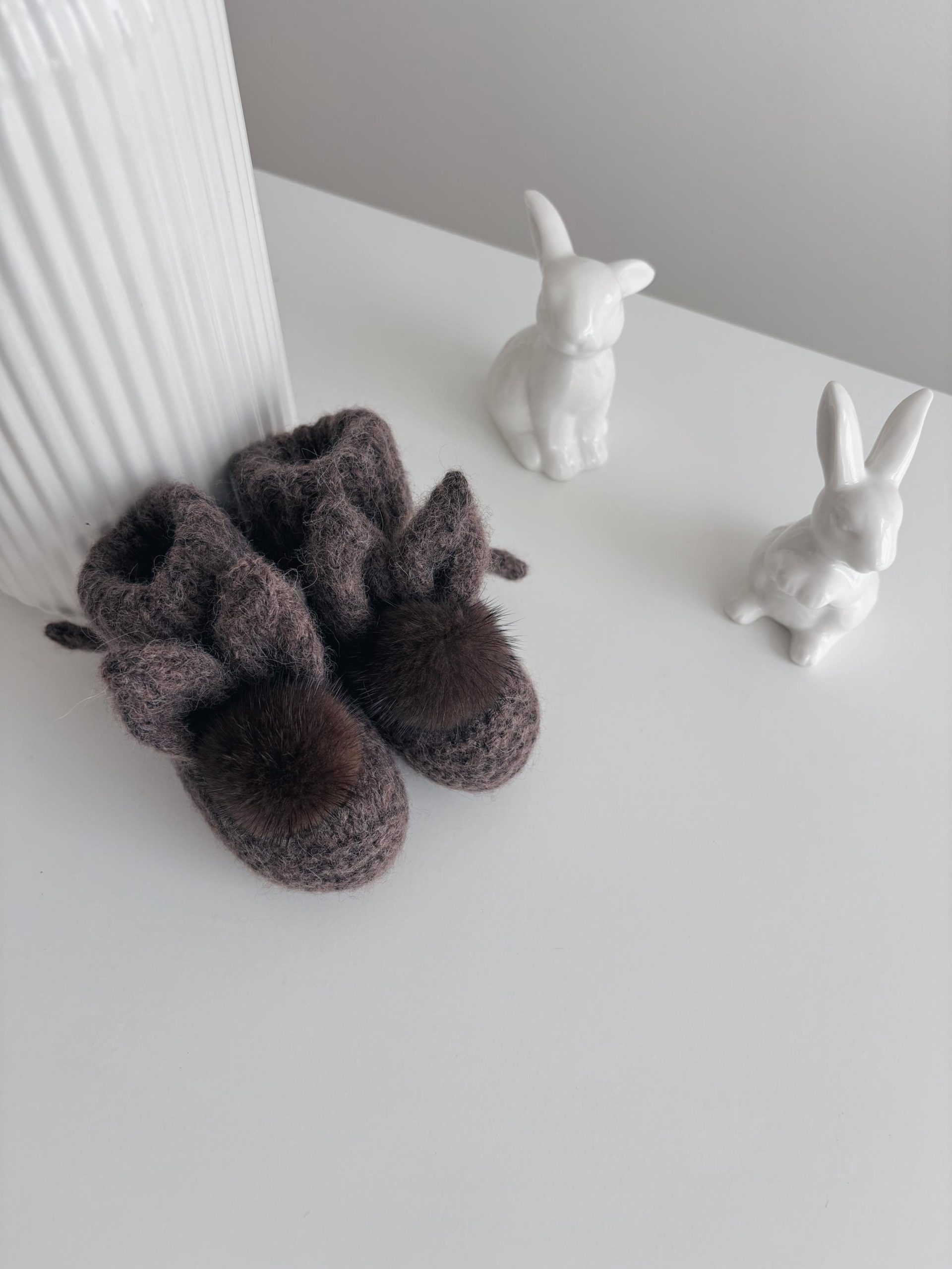 Angora Bunny Booties (0-3 Months) – Alpaca Knit Baby Girl Shoes