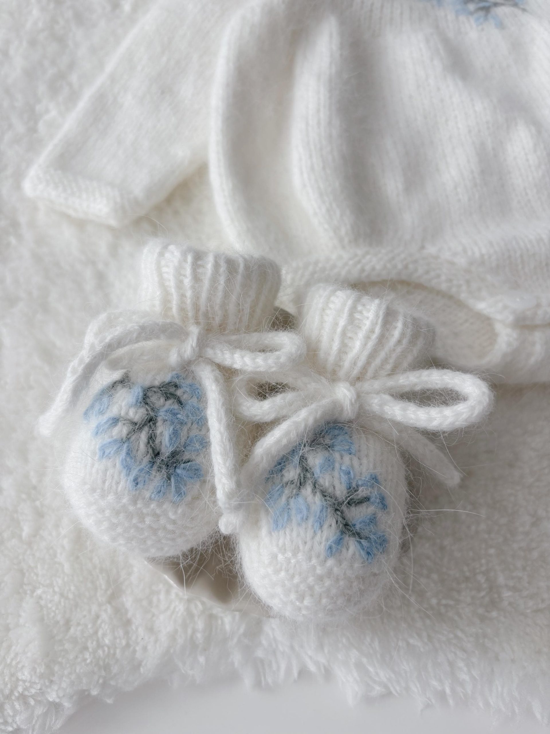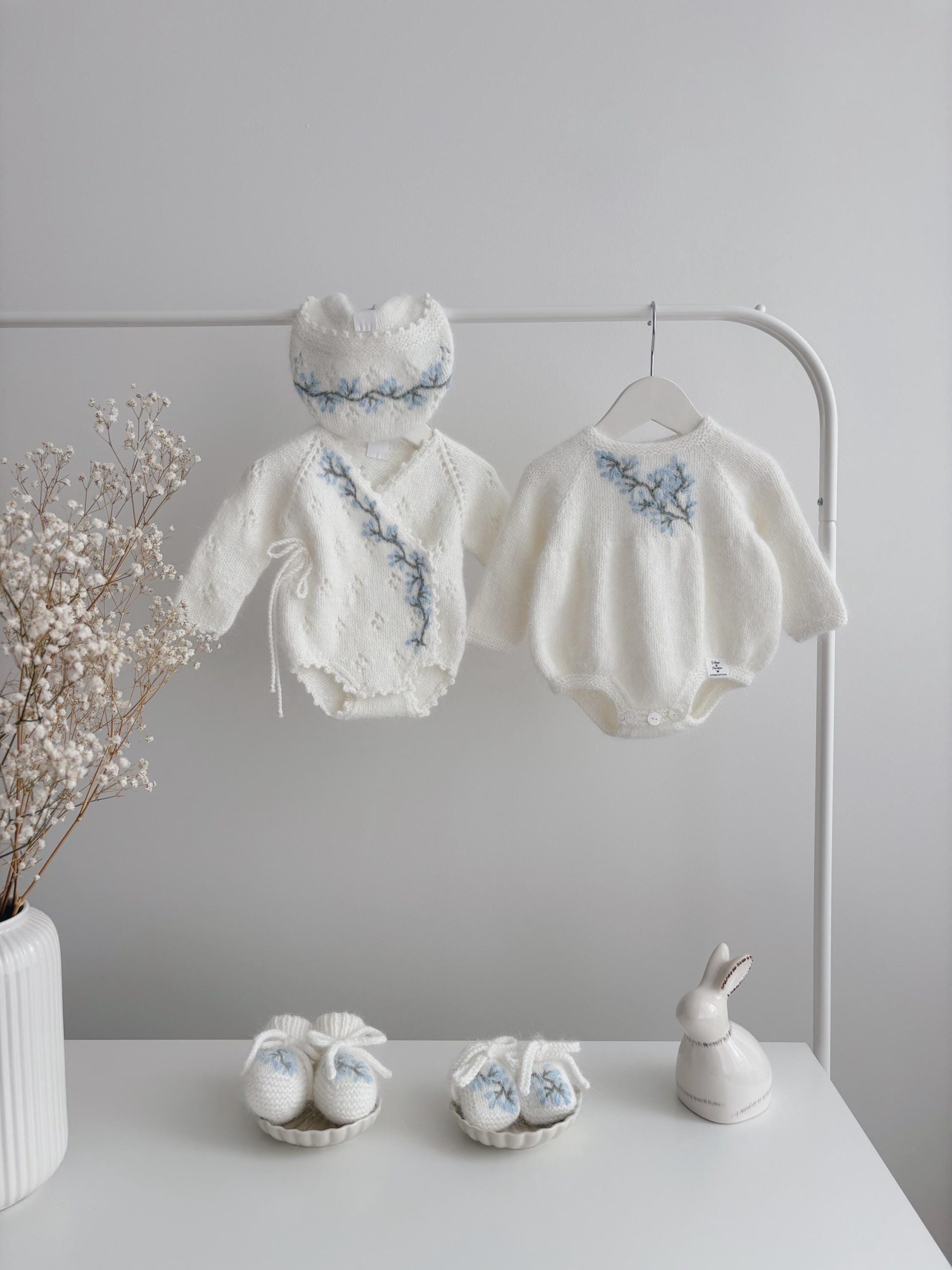 Merino Knit Baby Angel Outfit – Romper, Bonnet & Booties