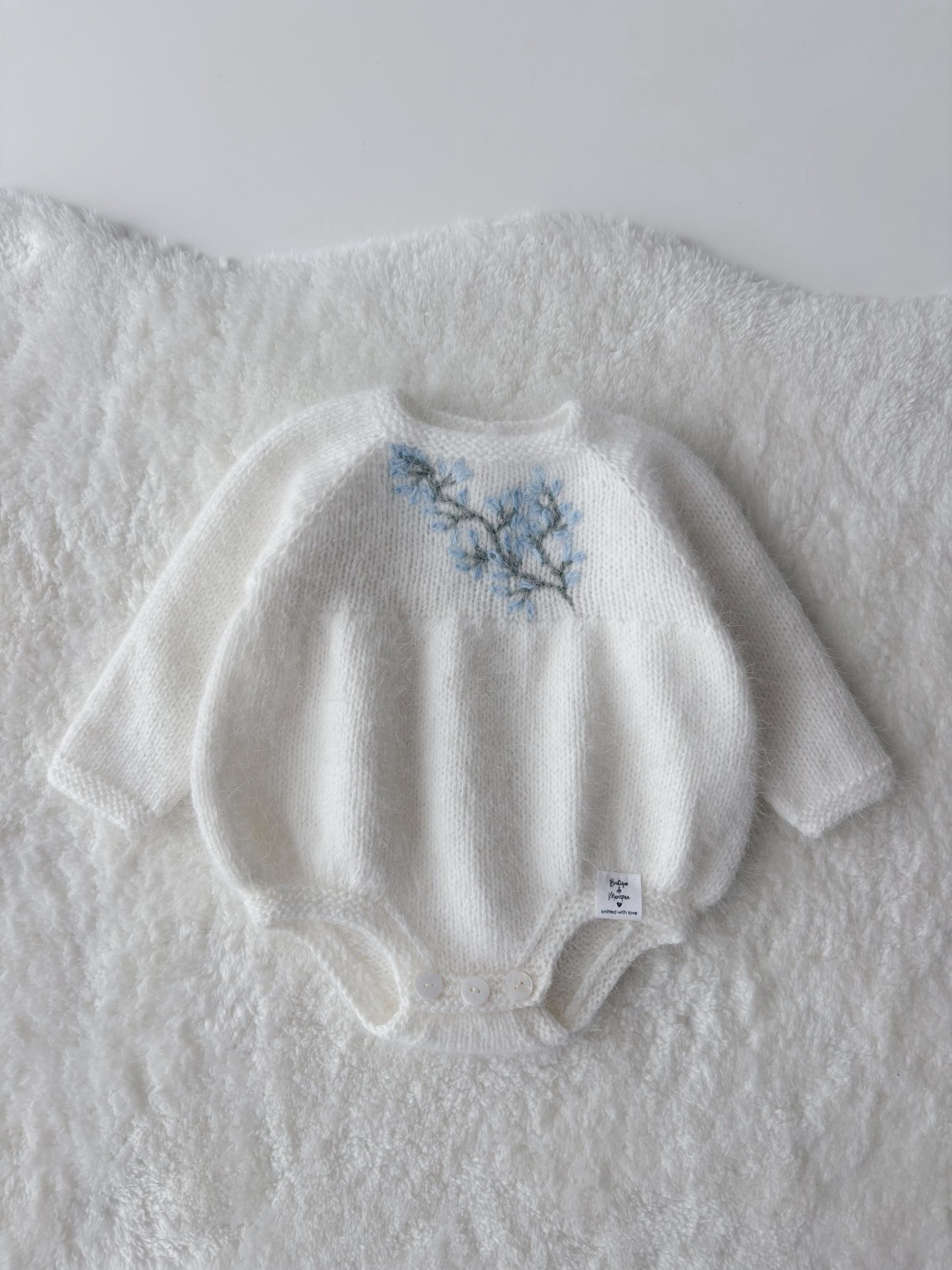 Angora romper and booties – Set of 2 – Long sleeve romper – Baby girl props – Photo props – Baby boy – Baby photo – Embroidery – White