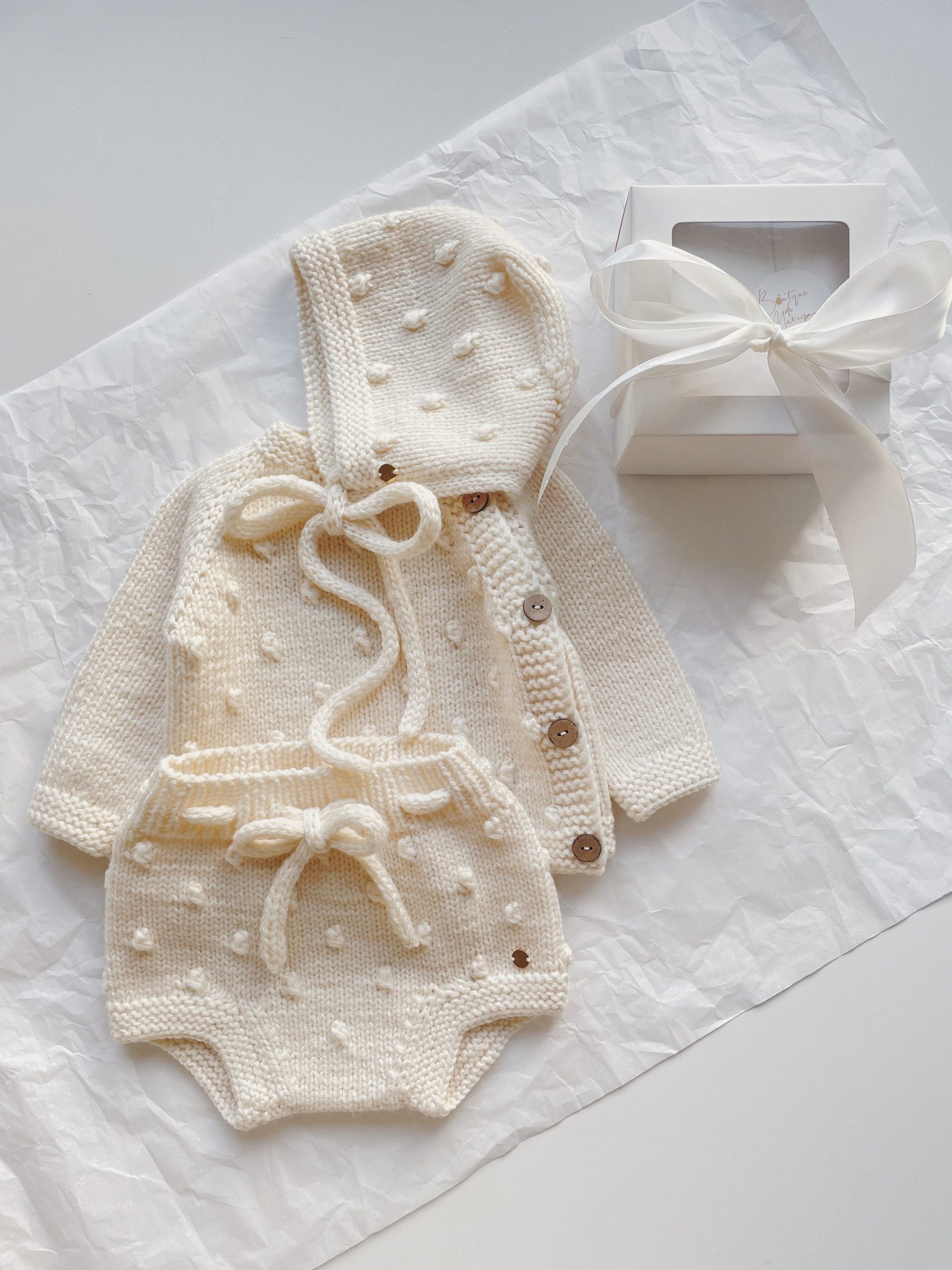 Set of 3 – Baby girl set – Baby girl outfit – Baby boy outfit – Baby boy outfit – Cream baby set – Baby sweater, panties and bonnet