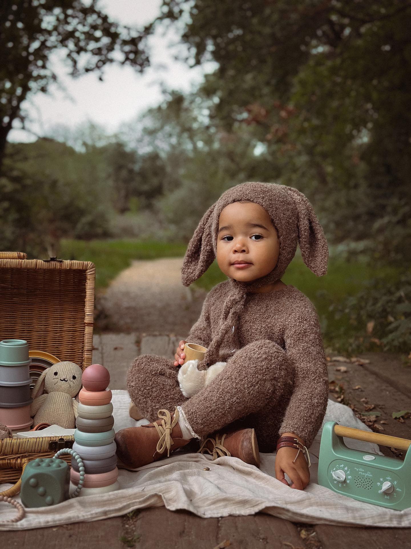 Baby Girl Photo Prop Set – Alpaca Romper and Bonnet