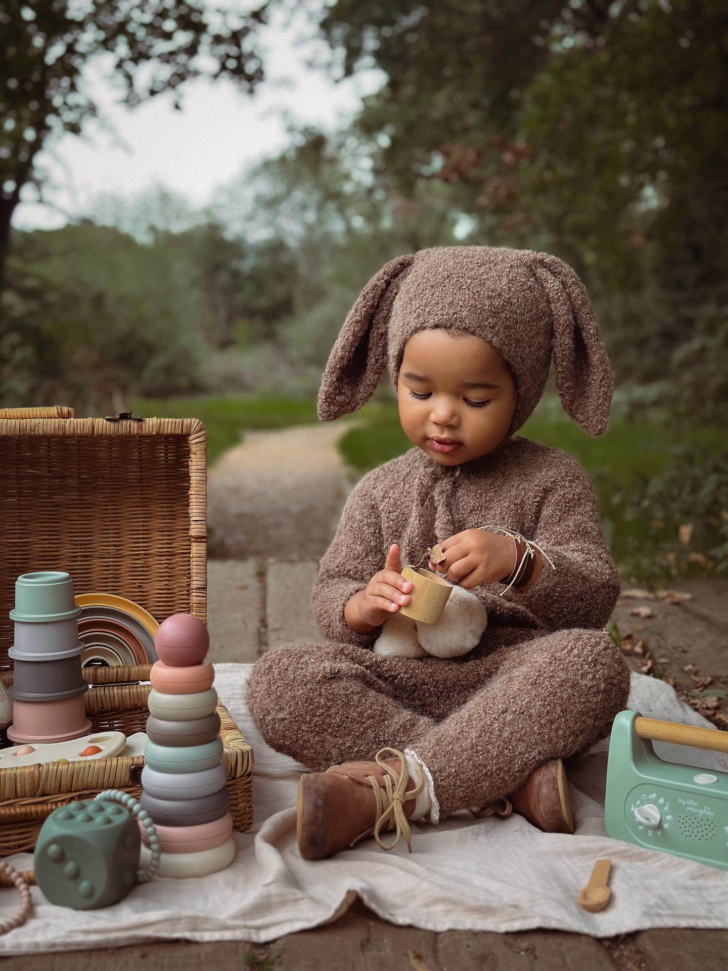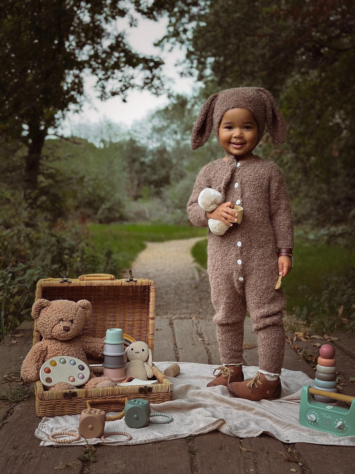 Baby Alpaca Knit Bunny Set – Romper & Bonnet, Genuine Fur Pom