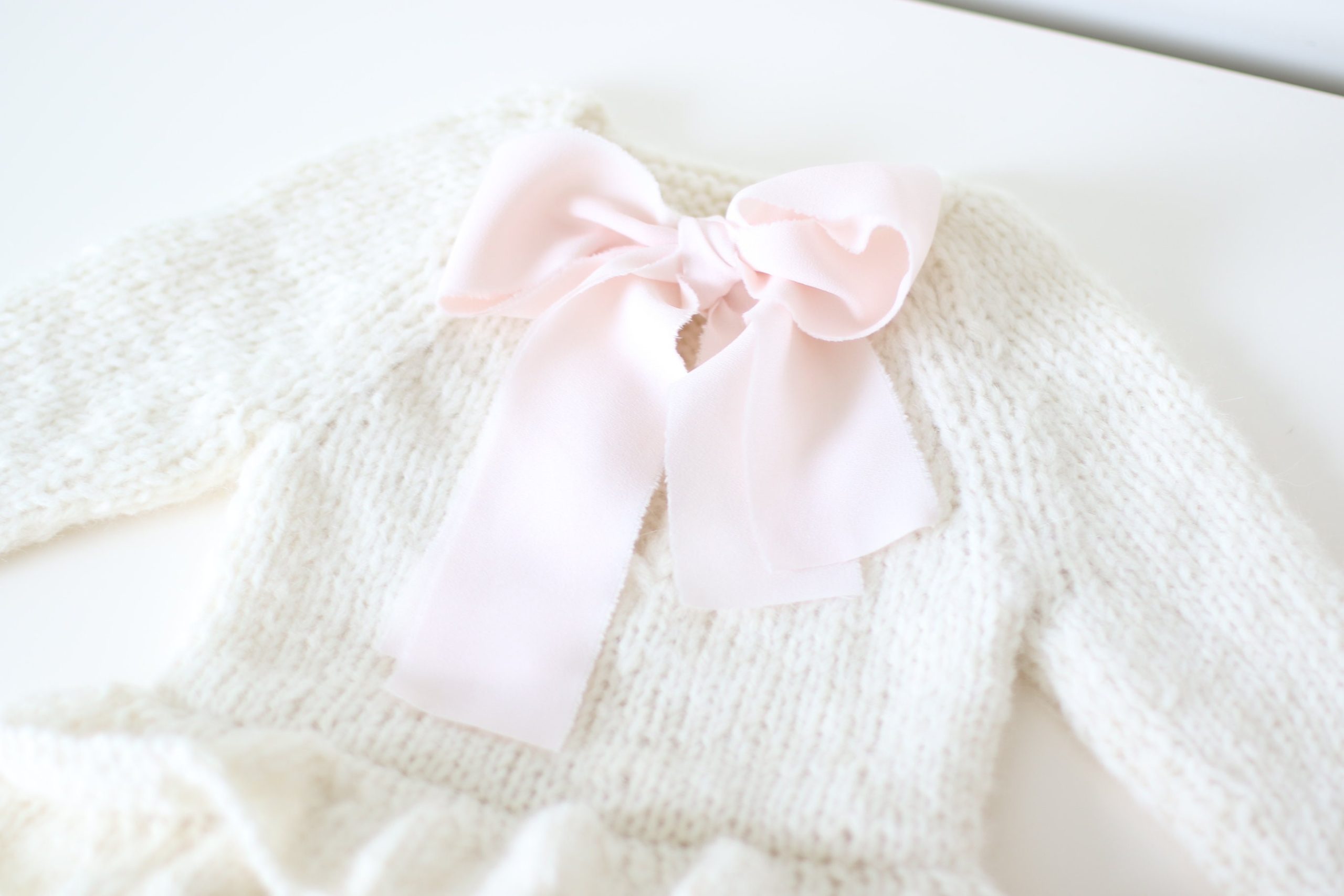 Pale Pink Baby Romper and Bunny Bonnet Set – Merino Mohair Blend