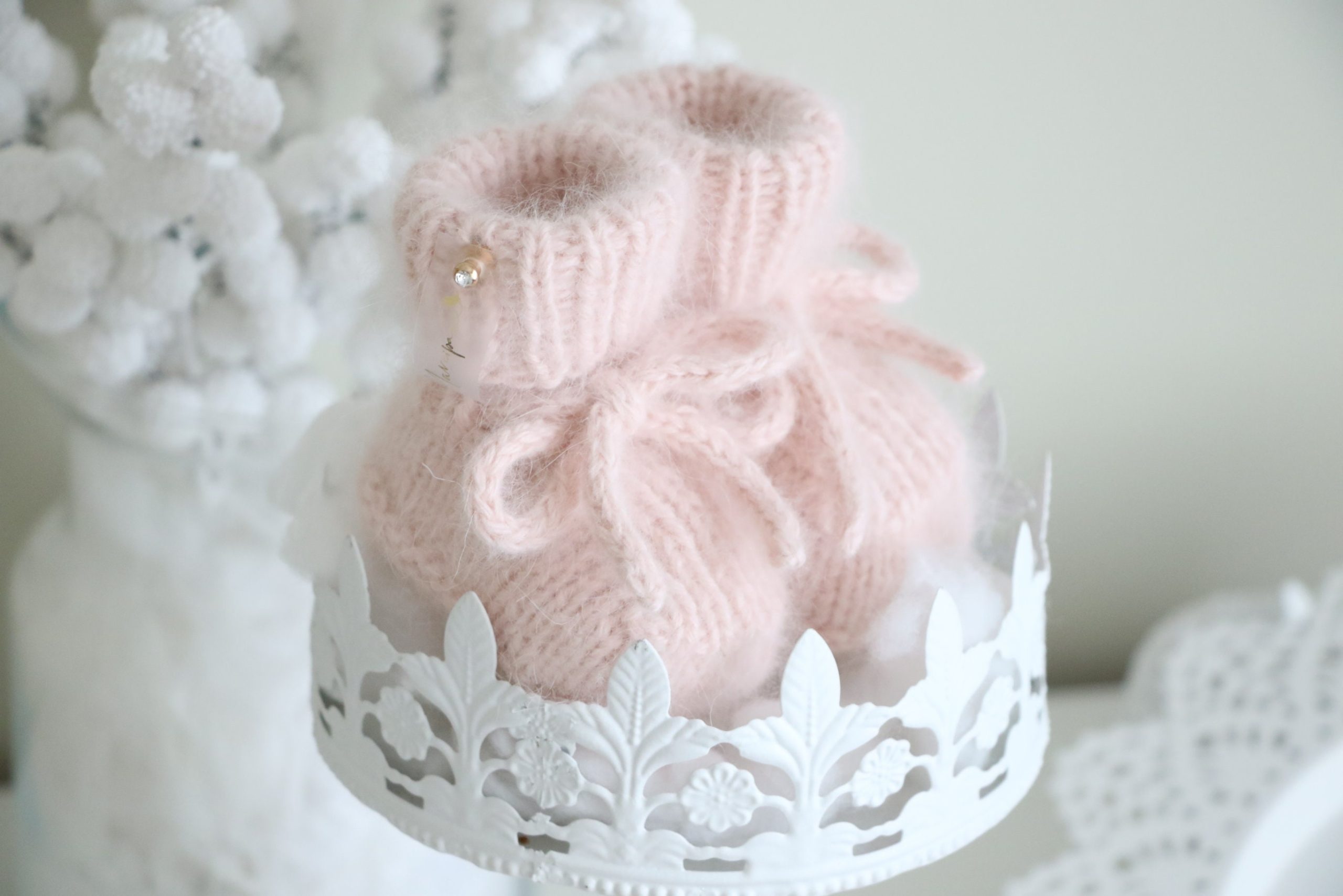 Pale Pink Angora Baby Booties – Newborn to 12 Months