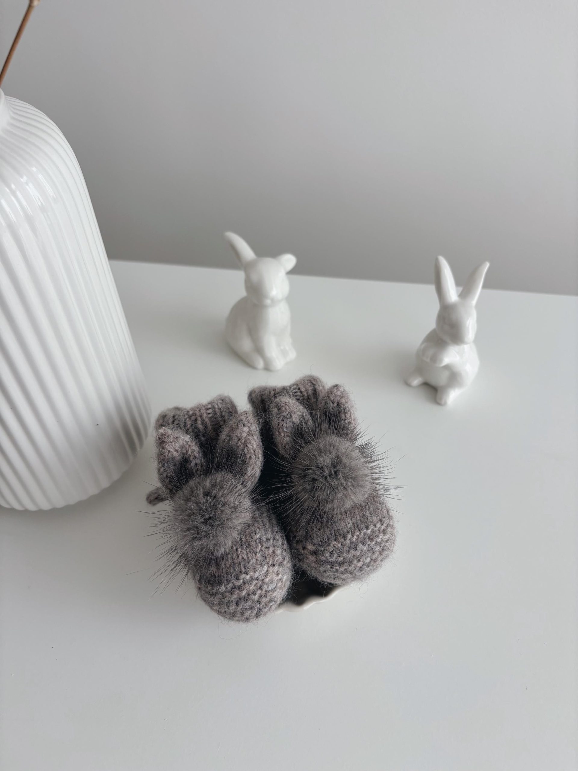 Baby bunny booties with fur pom poms in milky white color – Photography props