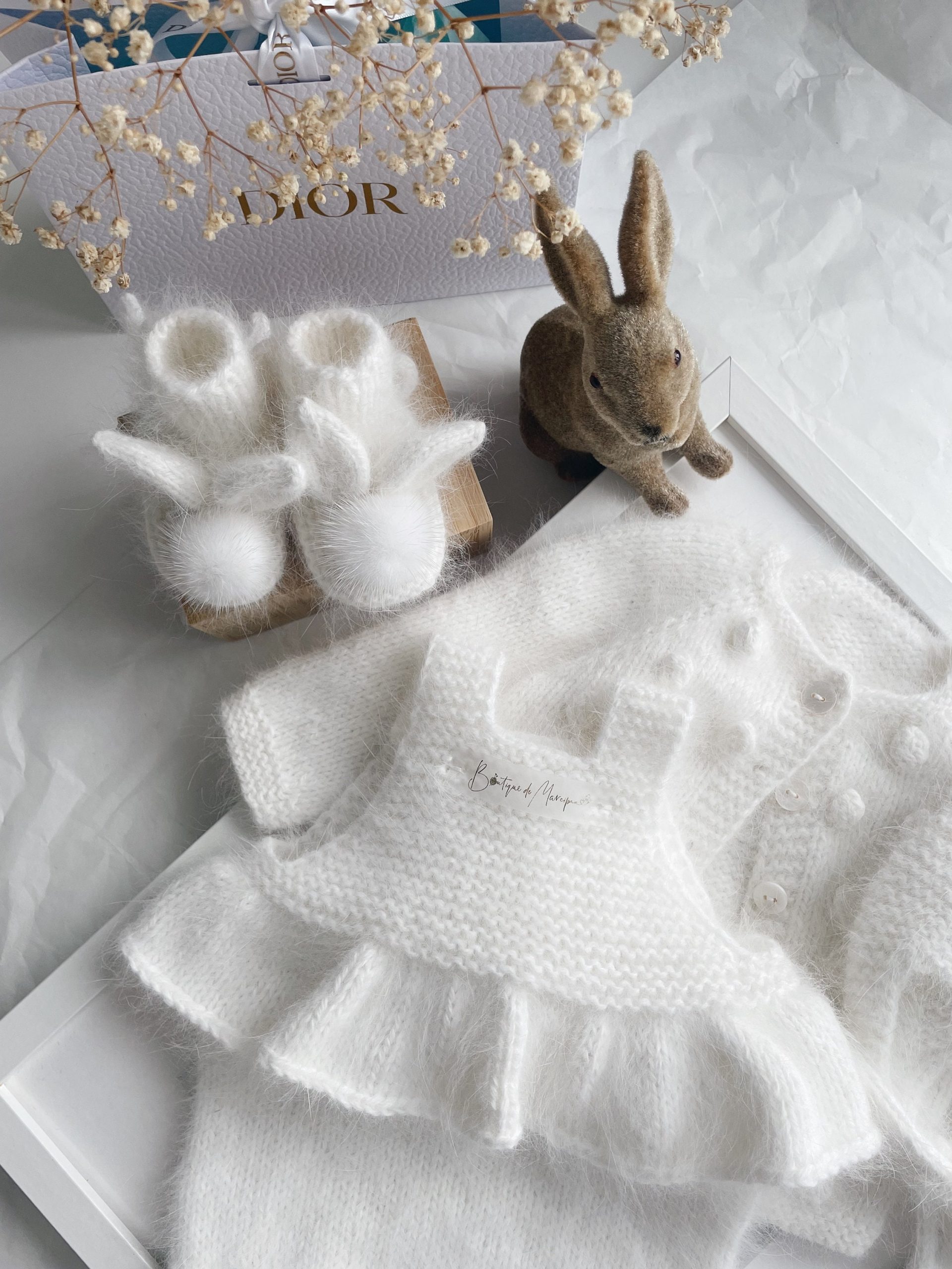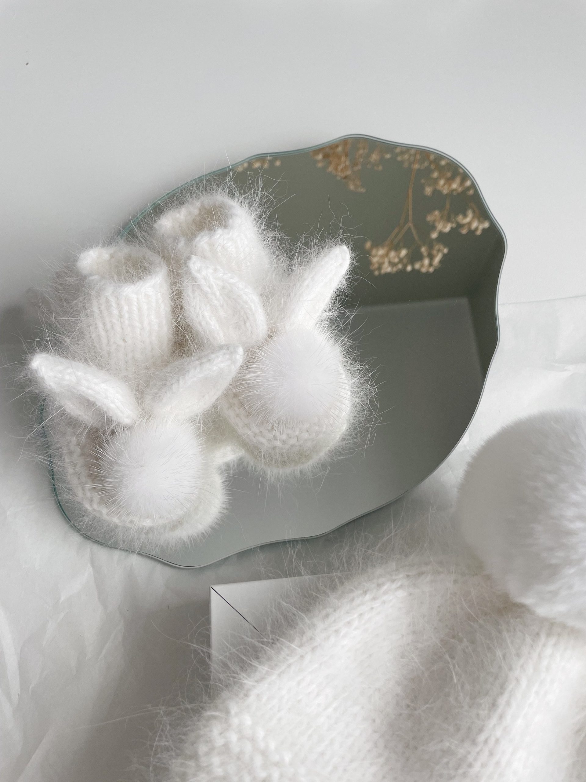 Baby bunny booties made from angora with genuine fur pom poms – Photography props