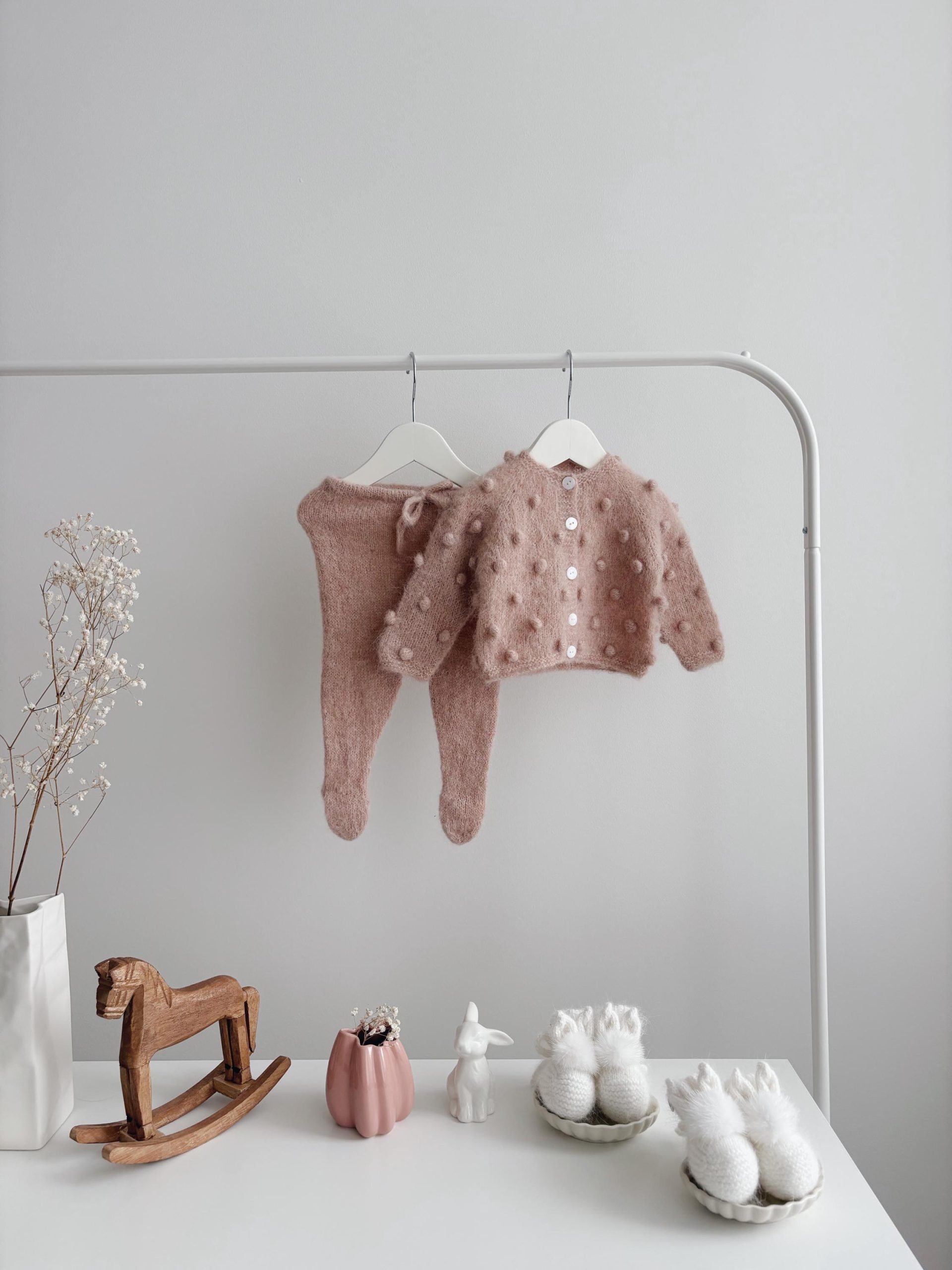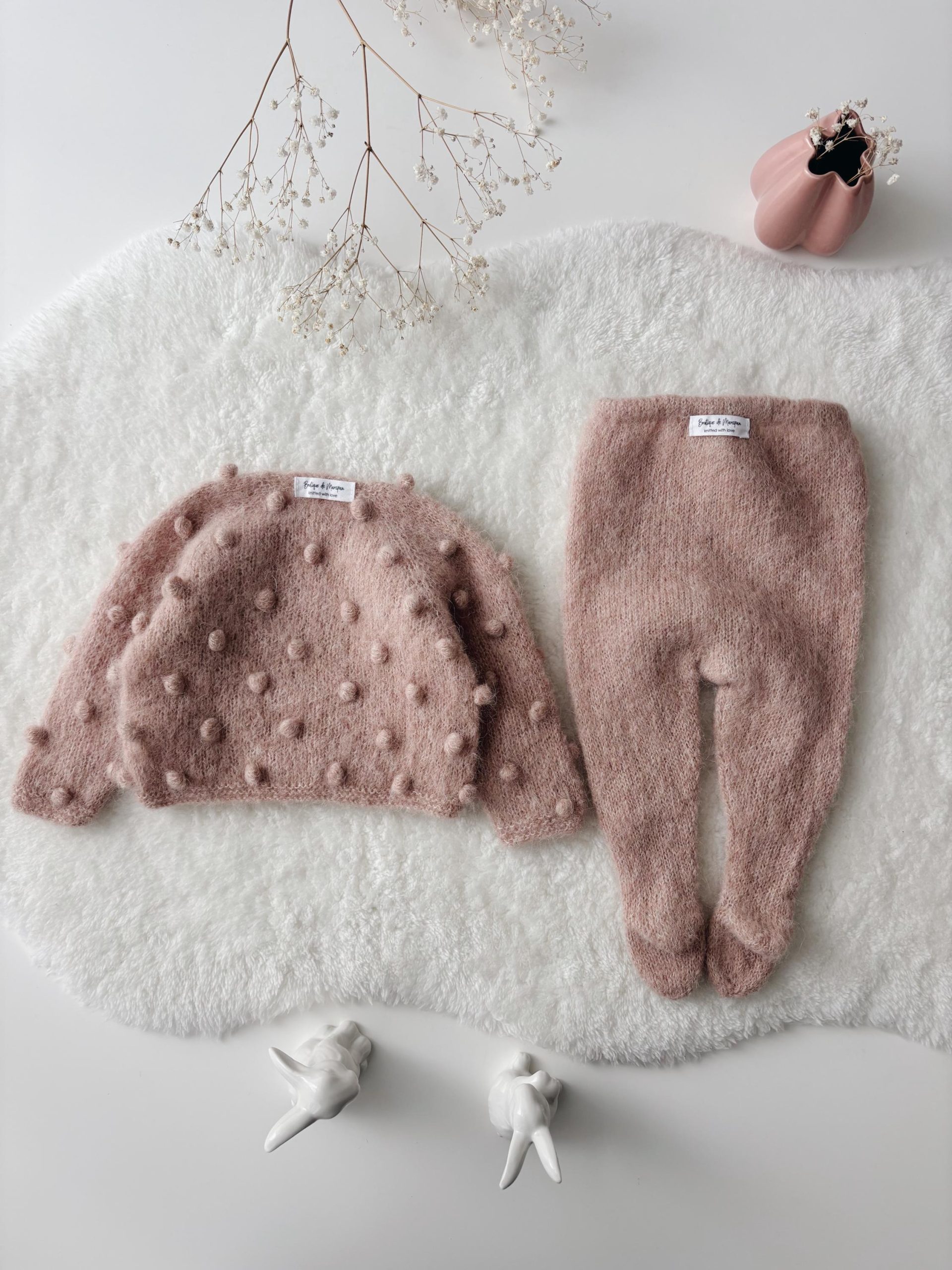 Merino Wool Baby Romper Set – Pink Popcorn Knit Outfit