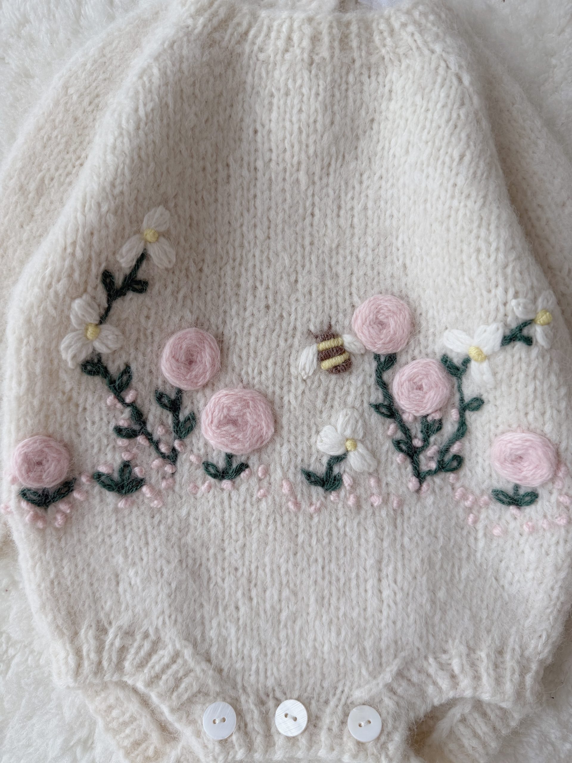 Alpaca Bunny Baby Set – Cream Romper and Bonnet