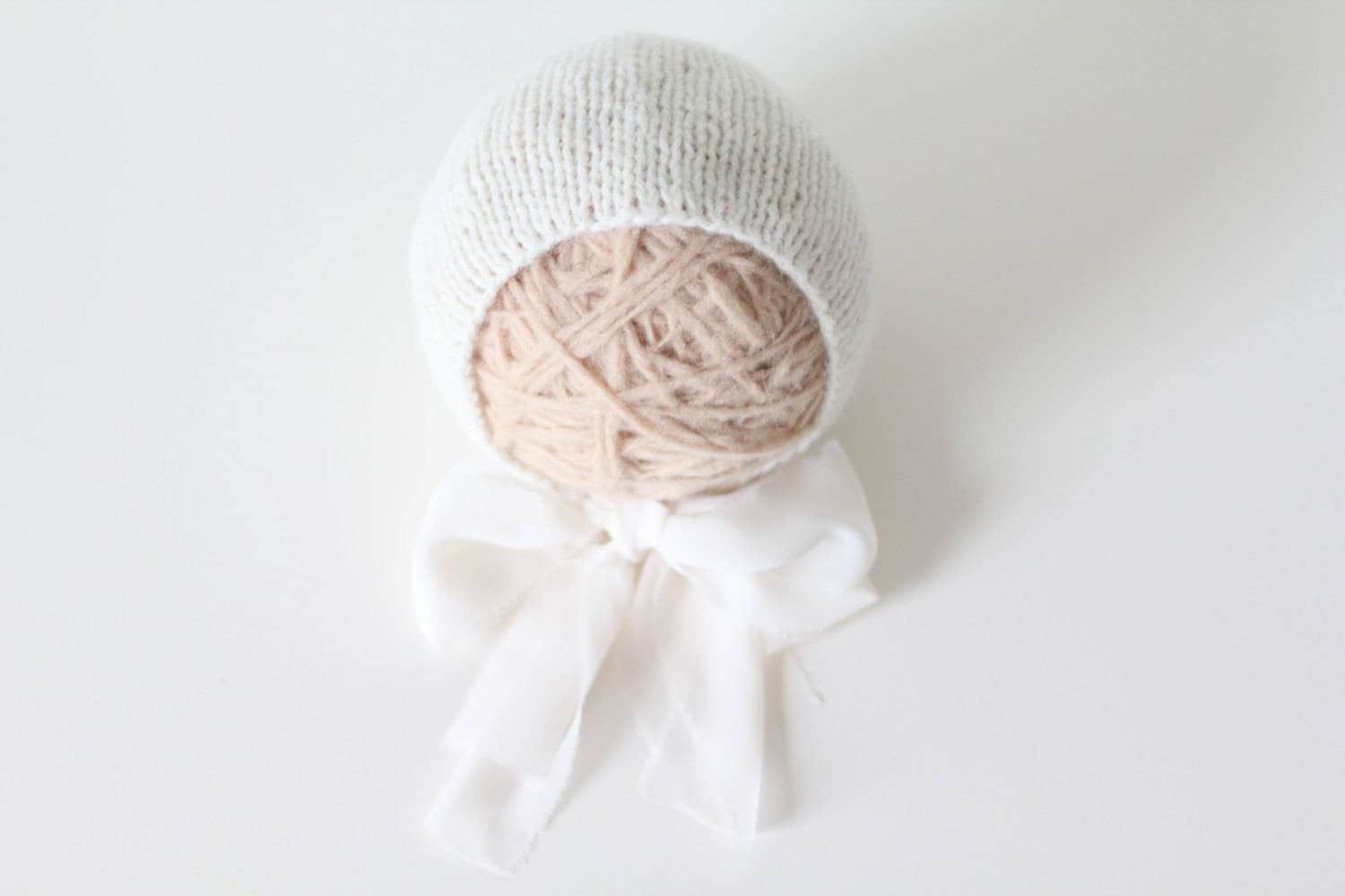 Baby girl bonnet – Alpaca yarn – Cream color – Photography props