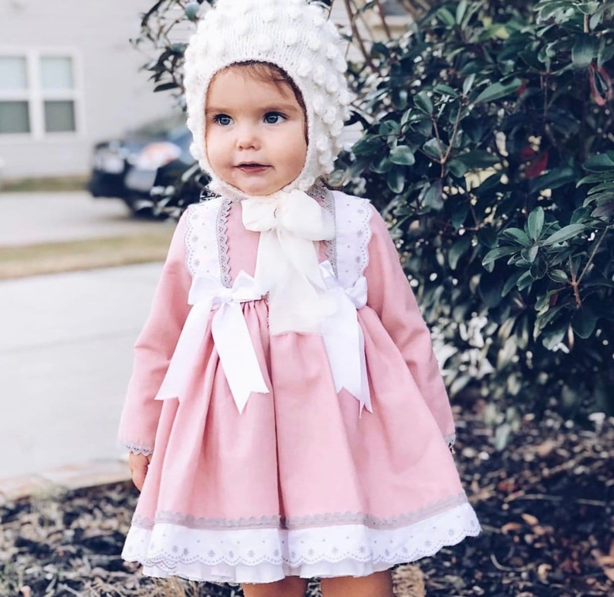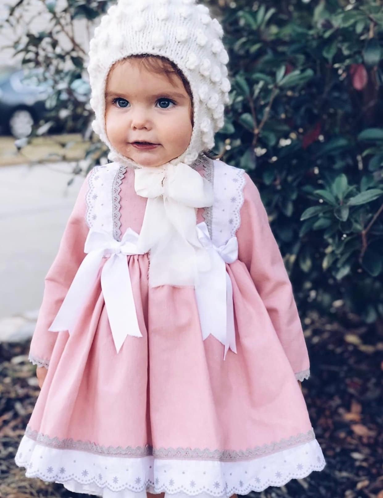 Baby girl popcorn bonnet – Alpaca yarn – Cream color