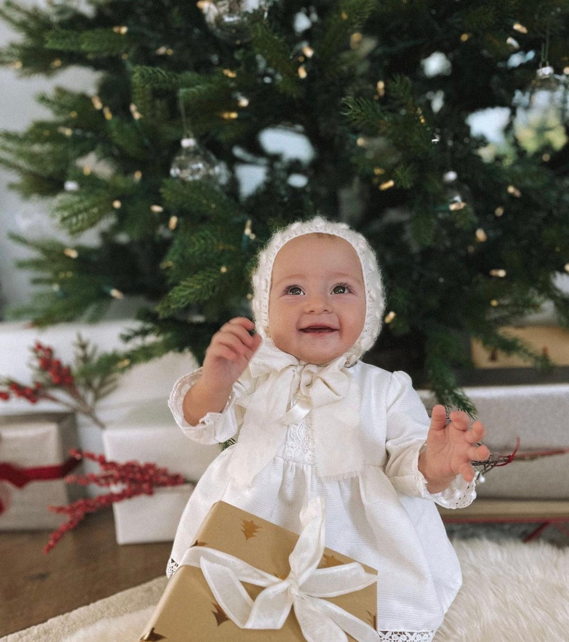 Merino Wool Baby Sweater and Bonnet Set – Cream Ruffle Neck