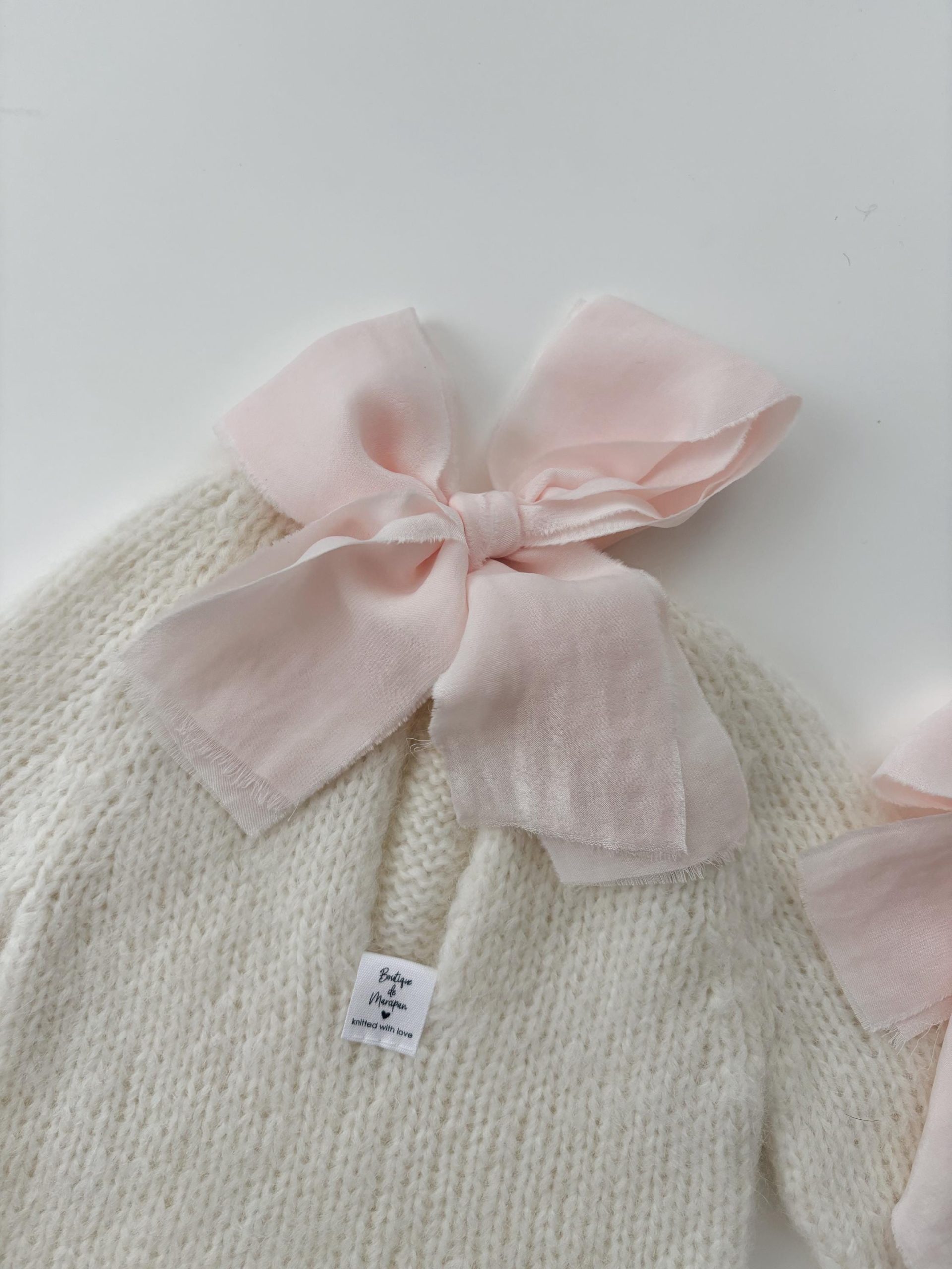 Pale Pink Baby Romper and Bunny Bonnet Set – Merino Mohair Blend