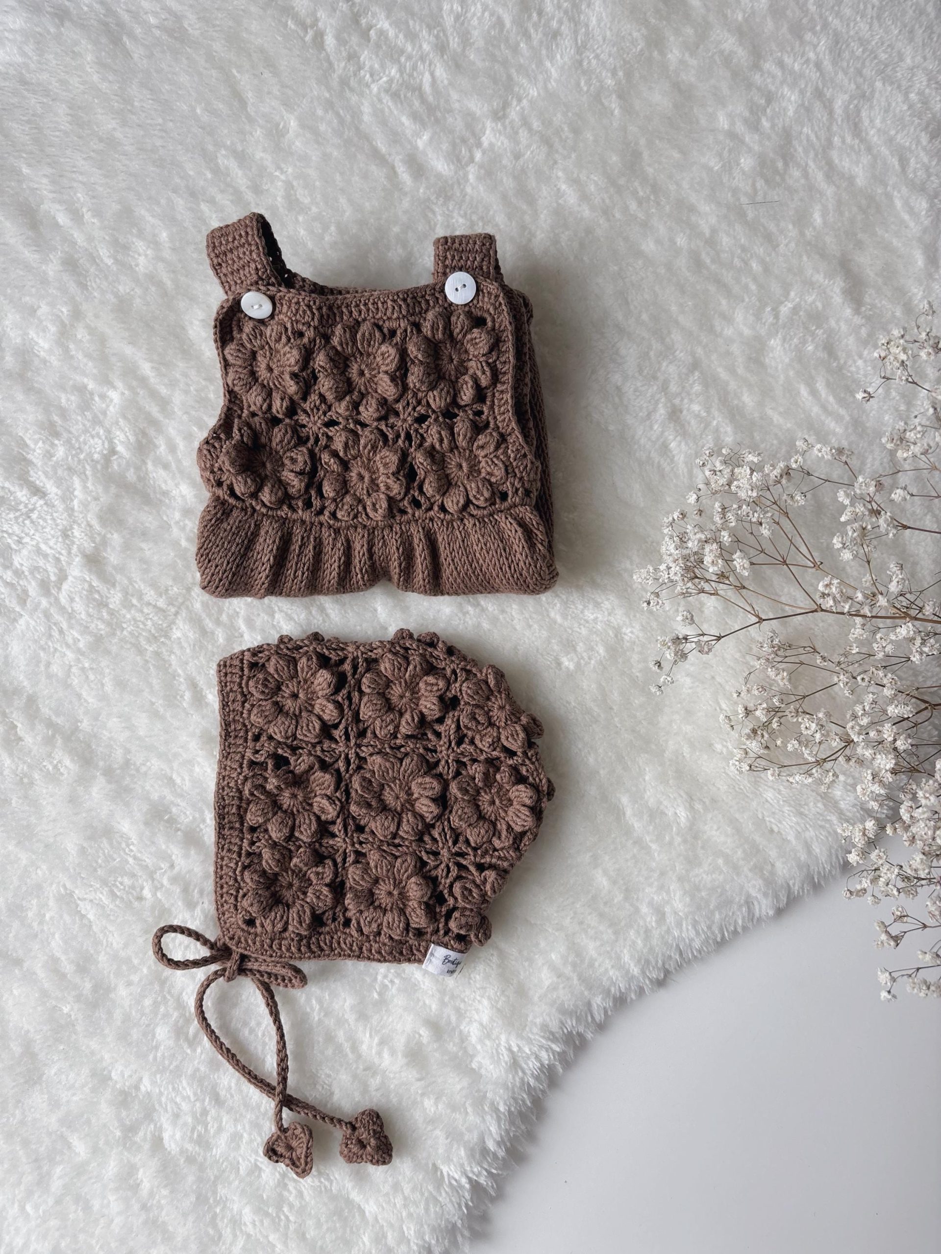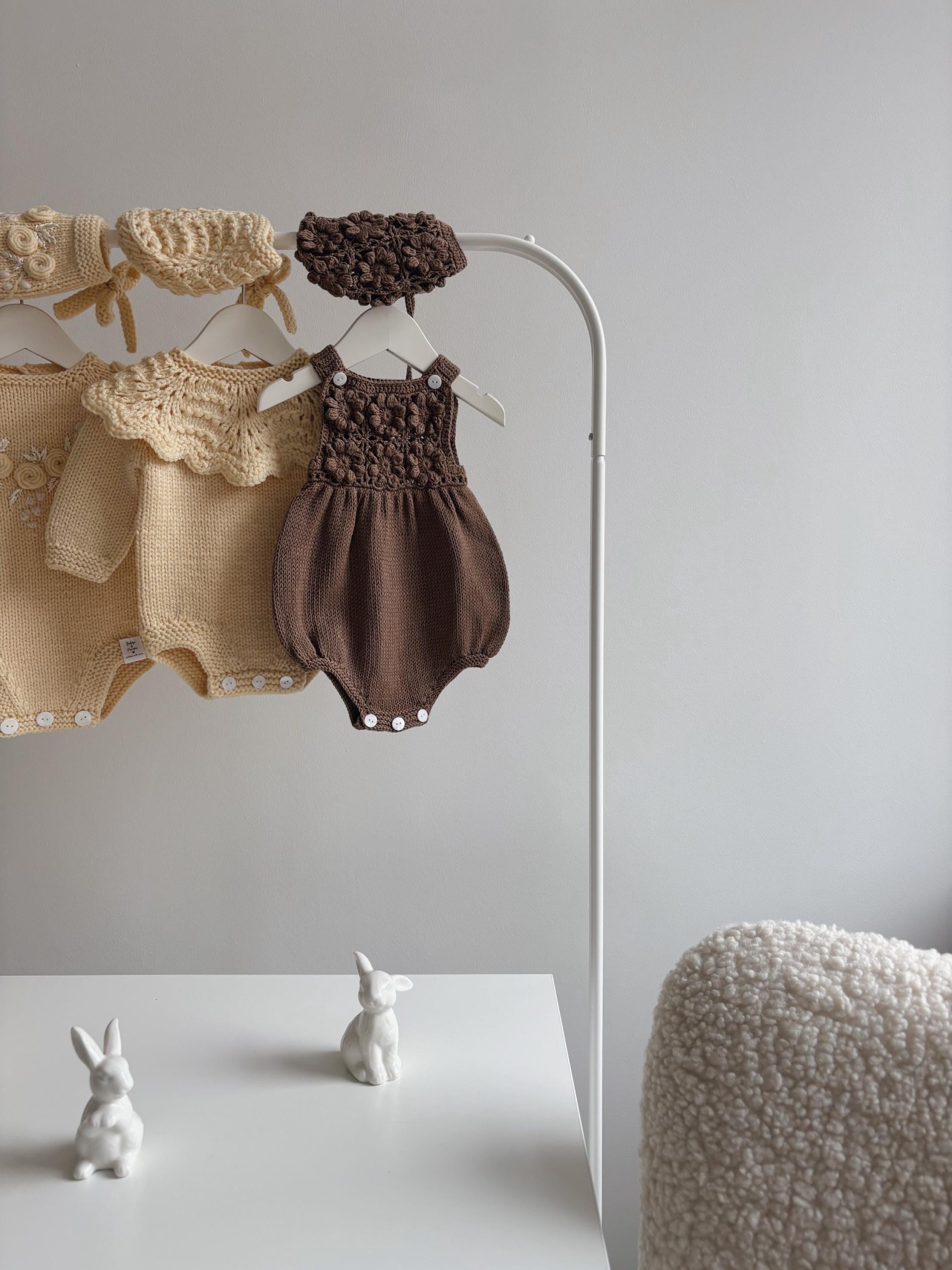 Embroidered Merino Baby Romper and Bonnet Set – Knitted Photo Prop