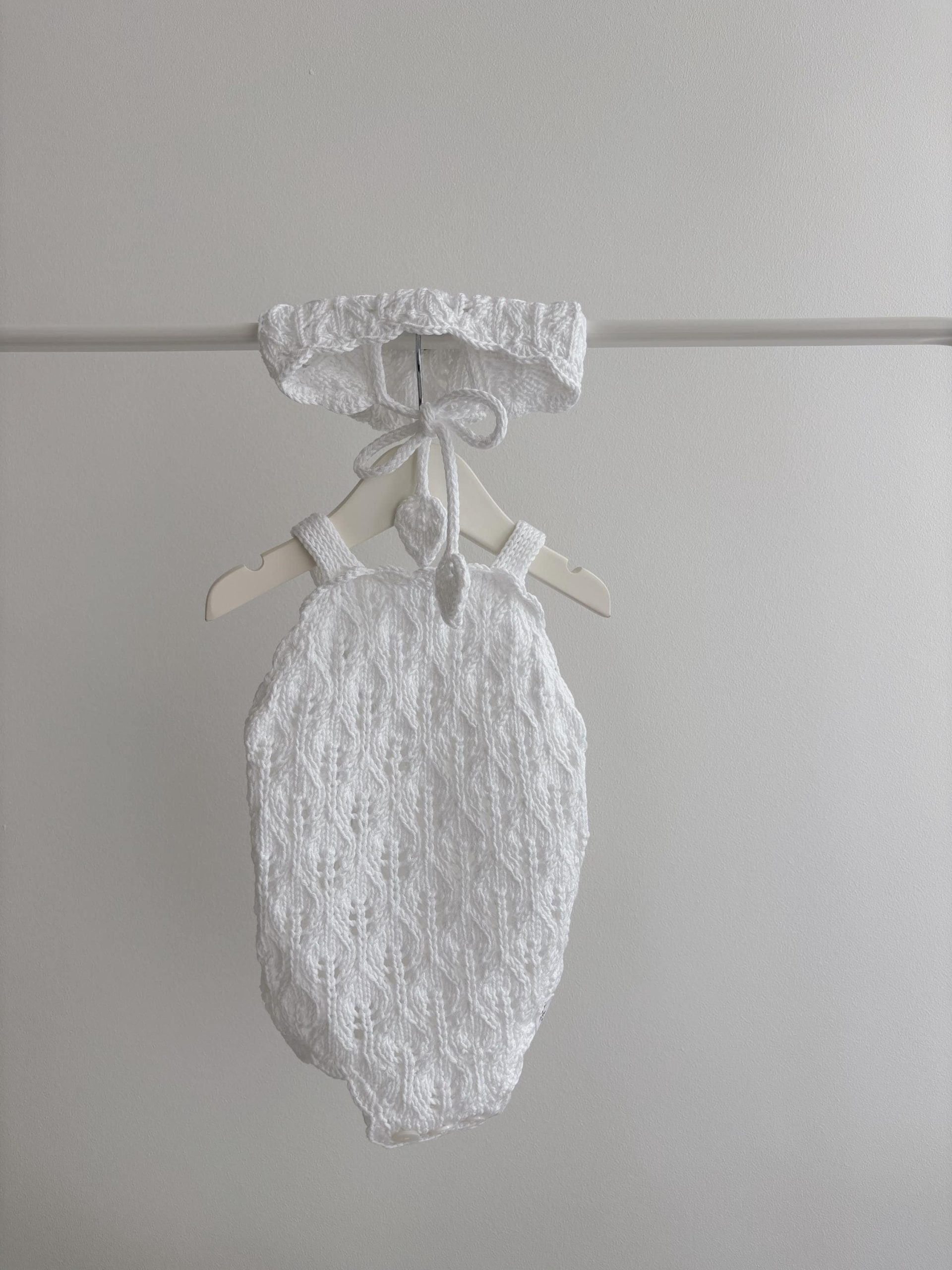 Hand Knit Merino Baby Romper and Bonnet Set – Photo Prop