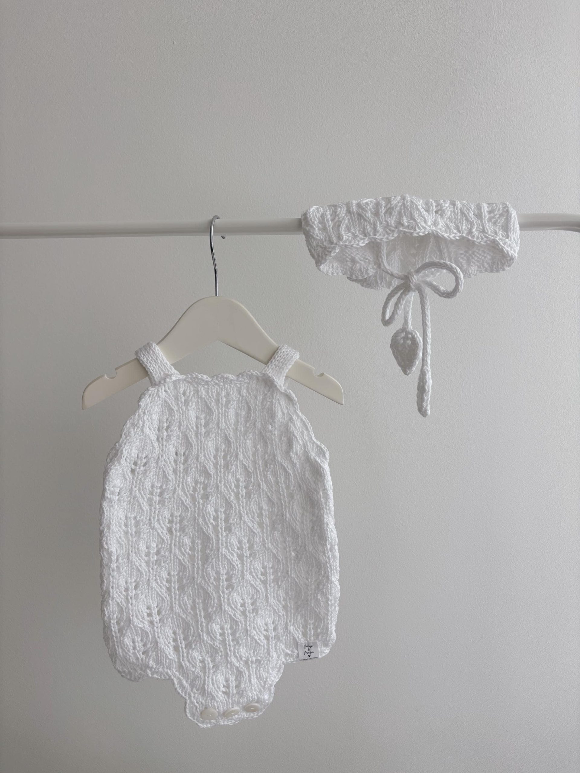 Embroidered Angora Baby Romper & Bonnet Set – Milky White Outfit