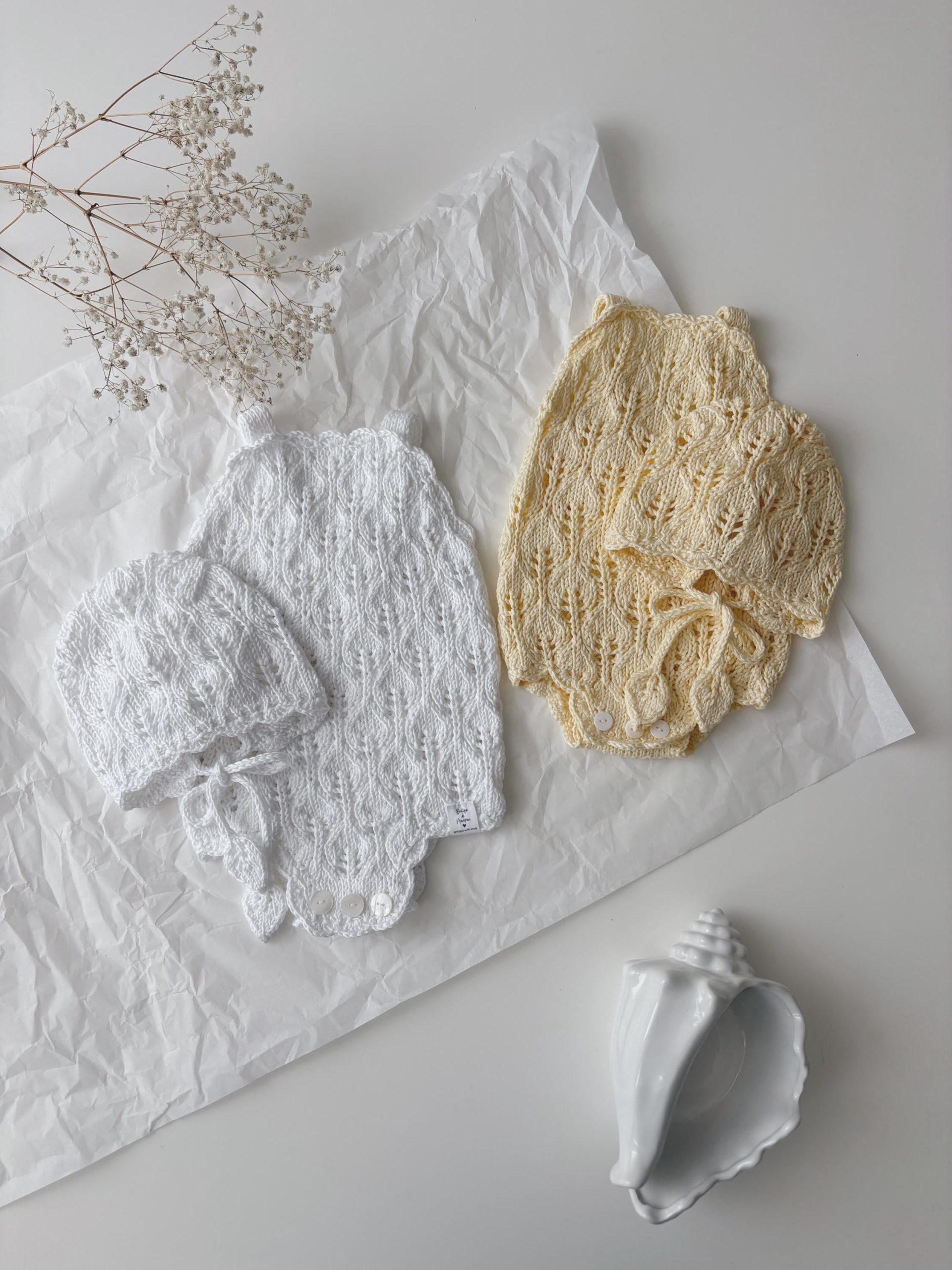Knit Baby Alpaca Romper and Bonnet Set – Cream Photo Prop
