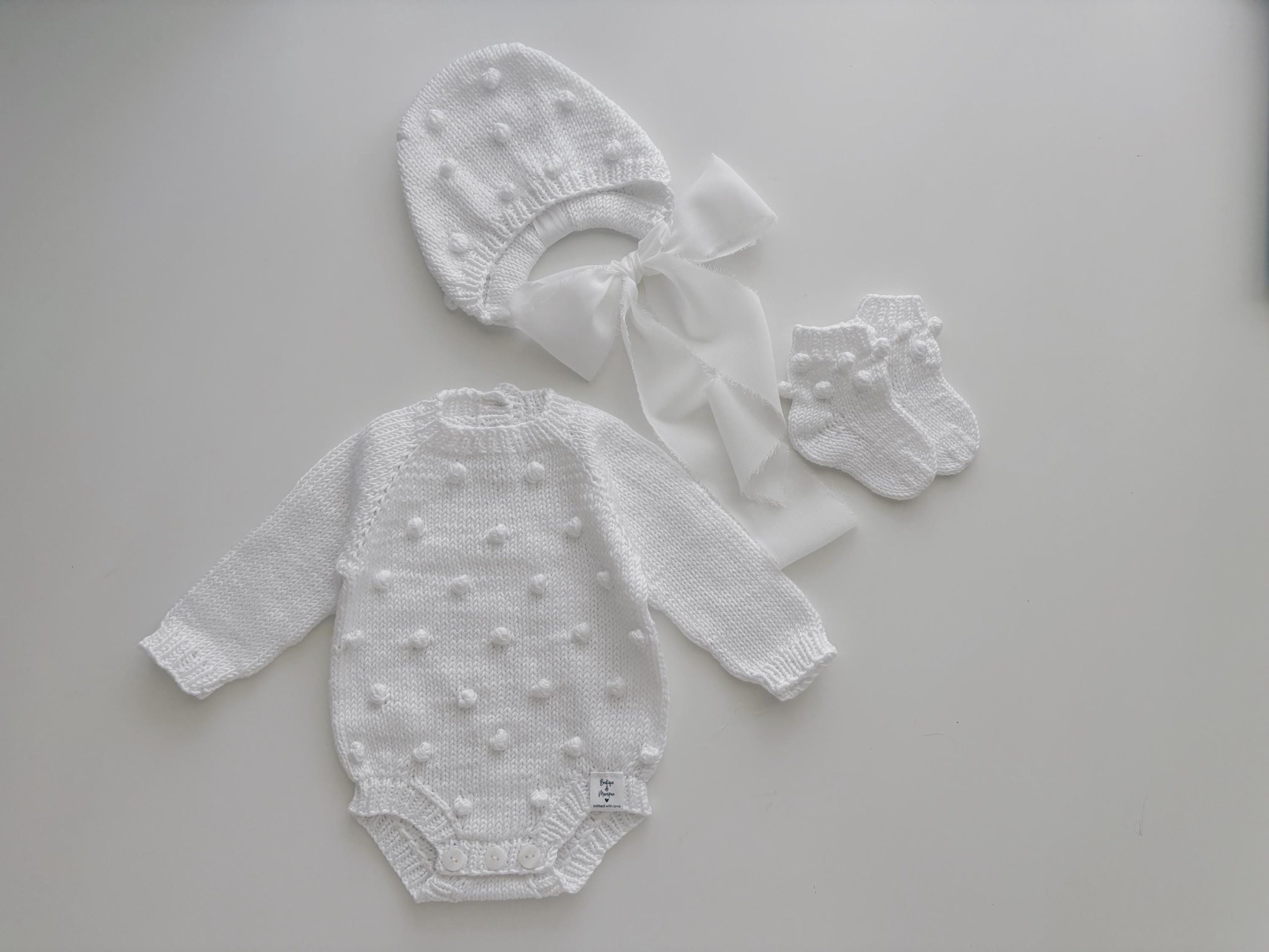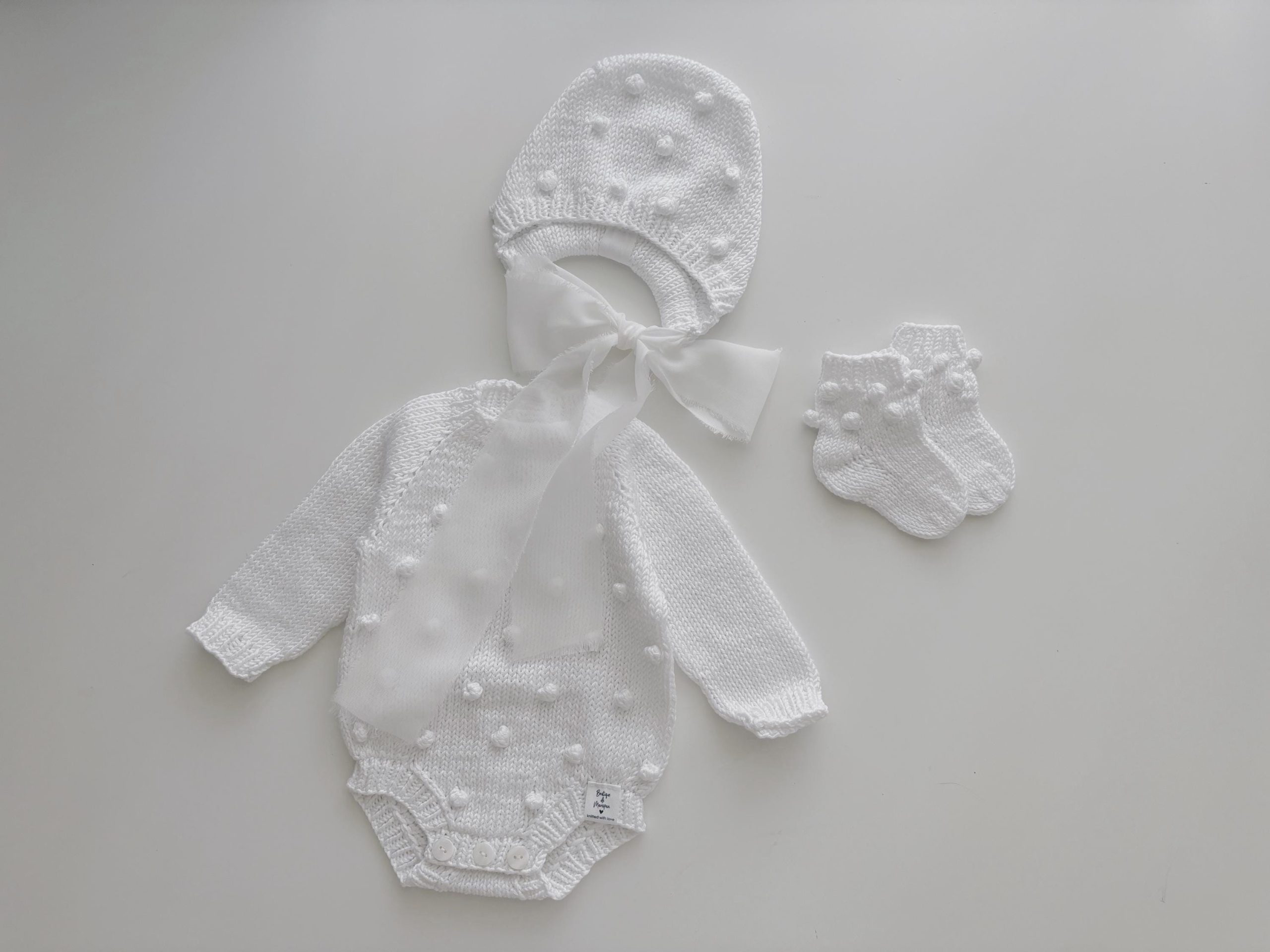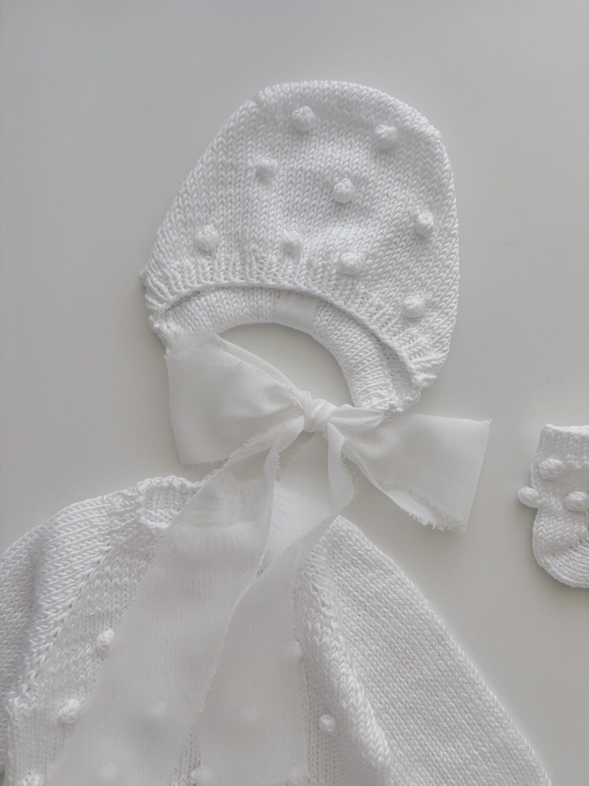 Merino Baby Romper and Bonnet Set – White Knit Photo Prop